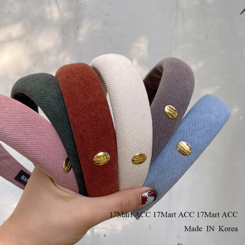 17mart韩国复古气质温柔纯色净版布艺高颅顶发箍金标宽边质感头箍