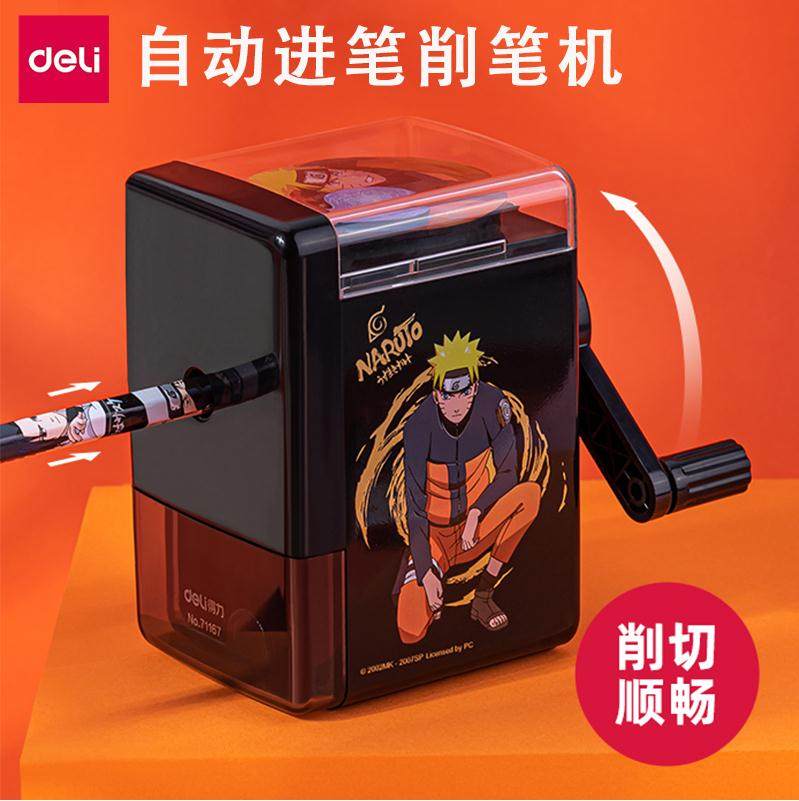 得力削笔机火影忍者联名款卡通转笔刀卷笔器彩色铅笔削三六角杆细刨圆杆顺滑学生用文具自动进笔不易断铅