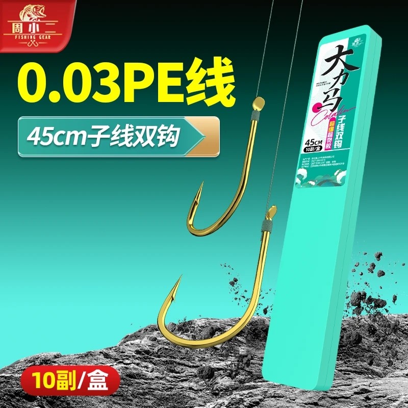 周小二超细大力马子线双钩0.03#pe线伊势尼金海夕金袖鱼钩钓鱼线
