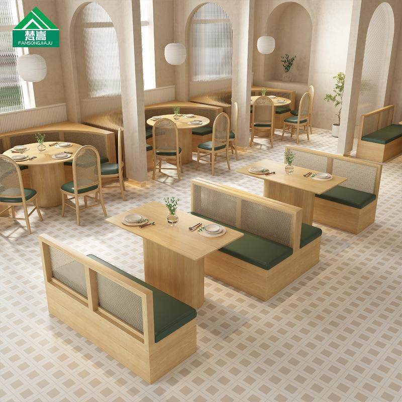 东南亚餐厅卡座沙发主题餐厅茶楼靠墙半圆卡座餐饮店实木编藤桌椅