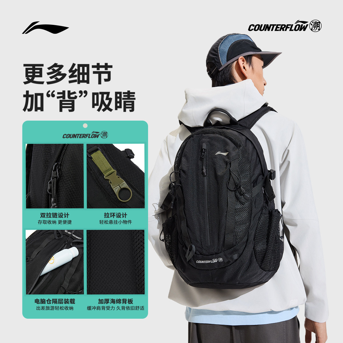 李宁户外CF溯丨双肩包男包女包2025新款背包书包学生反光运动包