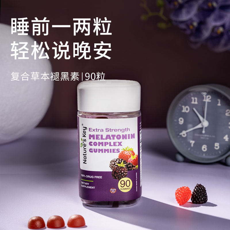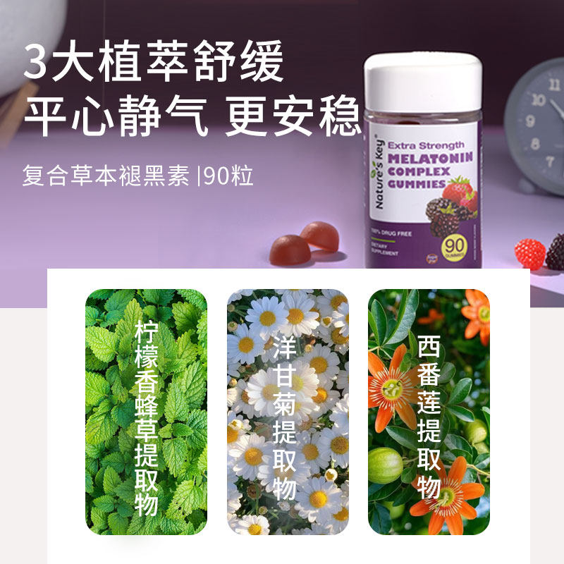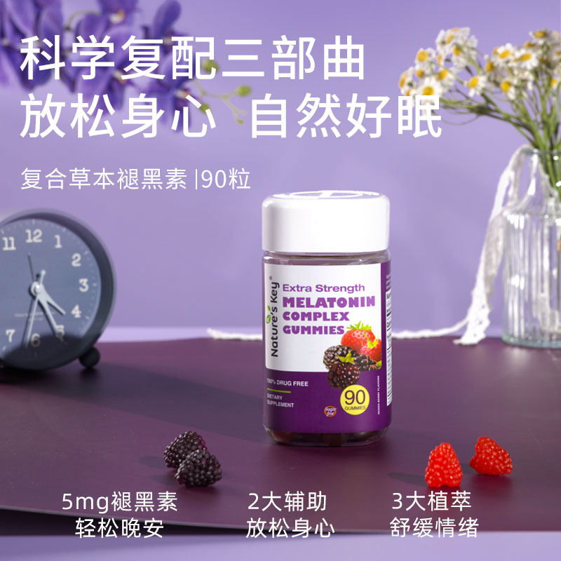 NaturesKey美国褪黑素软糖草本助茶氨酸睡眠觉煺退sleep复合植物