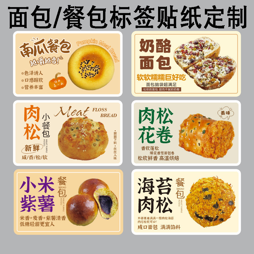 定制南瓜餐包贴纸肉松花卷不干胶烘焙红豆面包牛奶老面包紫薯奶酪烘焙打包早餐欧包盒封口腰封长条标签定做