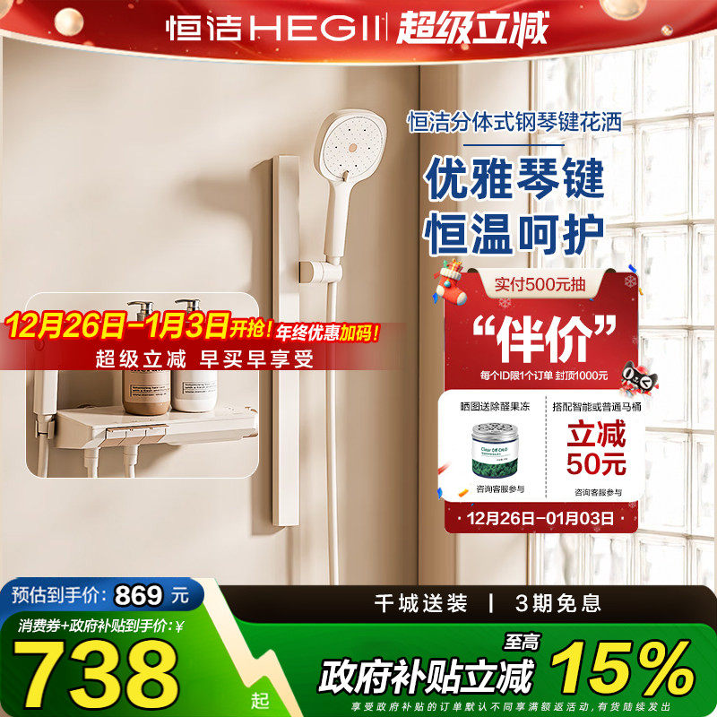 【李佳琦直播间双12美妆节】四季沐歌卫浴大置物恒温淋浴花洒套装