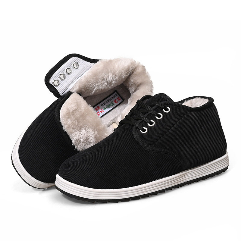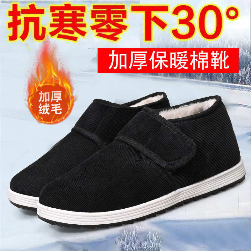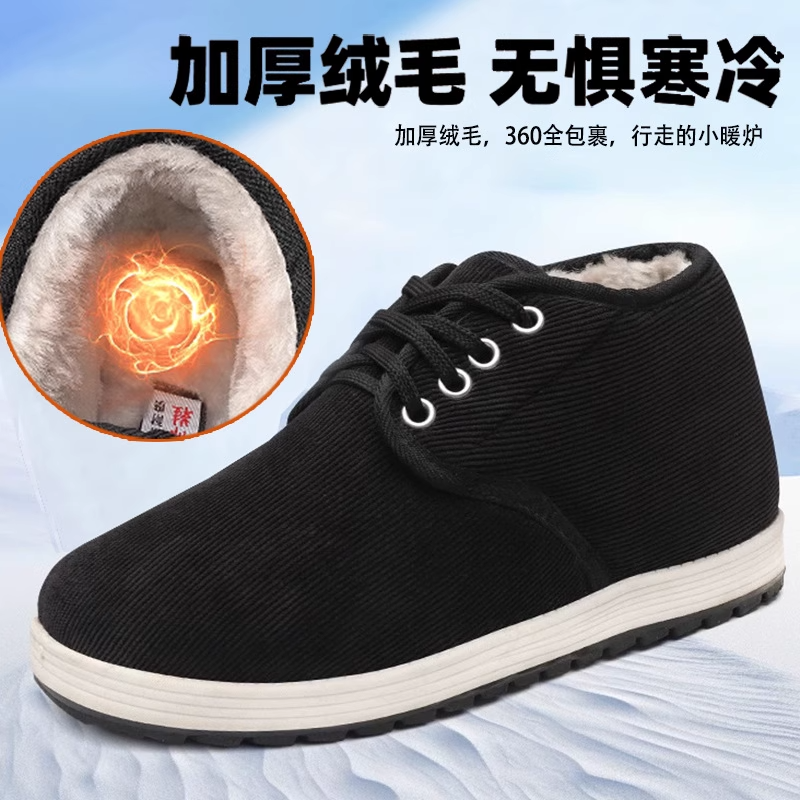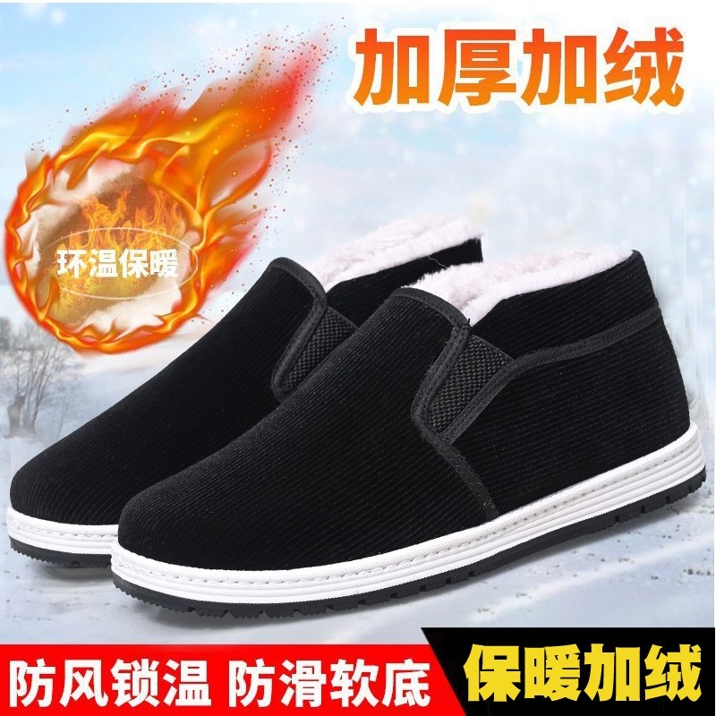 冬季老北京布鞋加绒棉鞋男士中老年保暖加厚防滑高帮一脚蹬胶底鞋