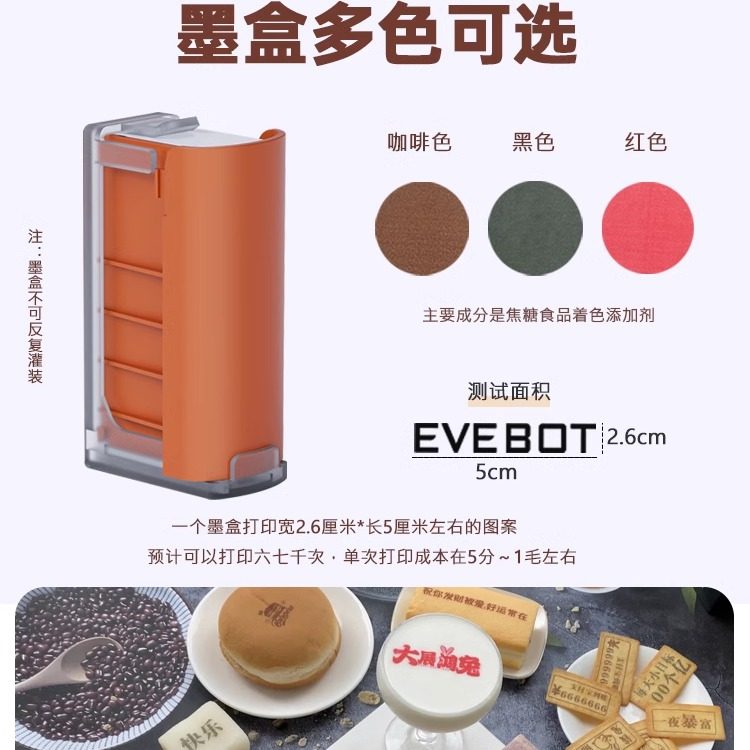 evebot亿瓦手持食品打印机咖啡拉花新派酸奶美食饼干餐盘印字神器