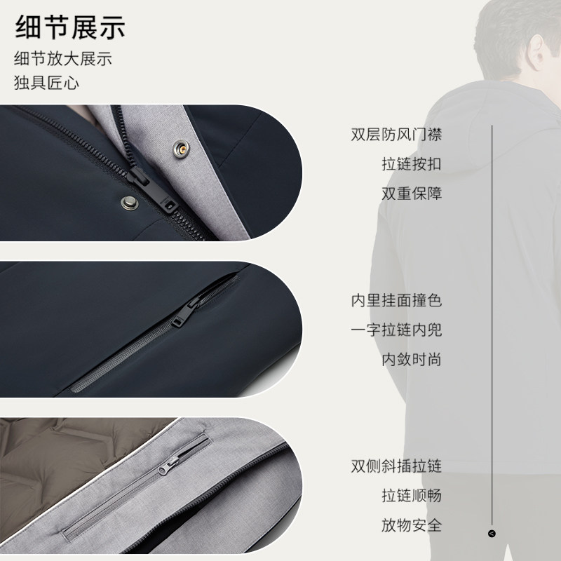 鸭鸭轻薄羽绒服男士2025年秋冬反季短款保暖休闲时尚连帽鸭绒外套
