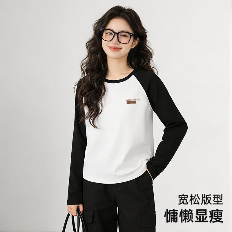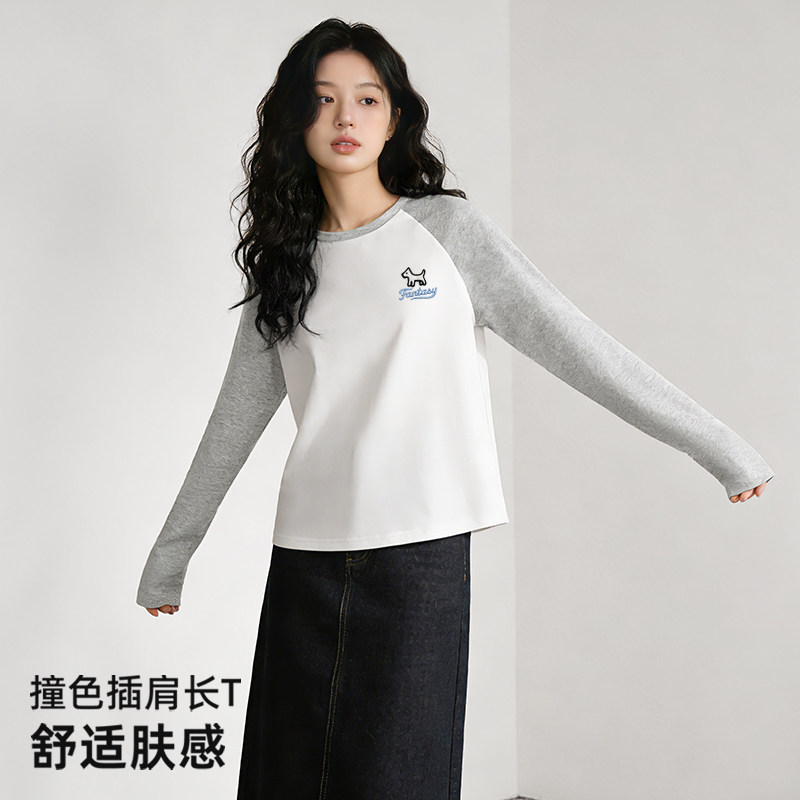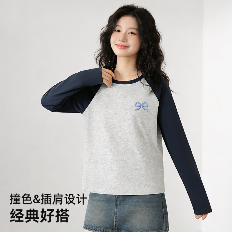 雪中飞长袖t恤女2026新款春撞色休闲上衣小个子修身内搭打底衫PC