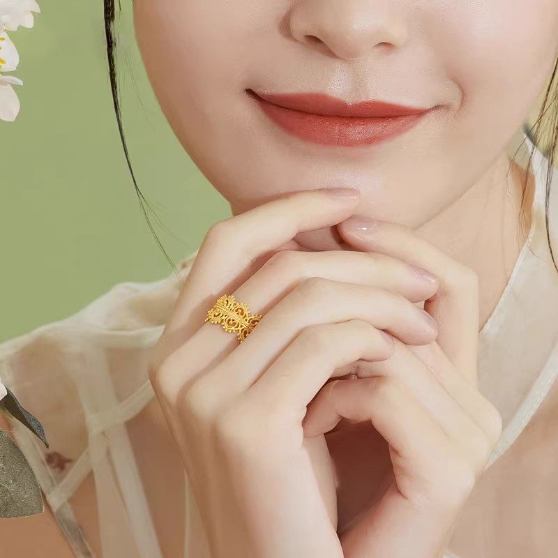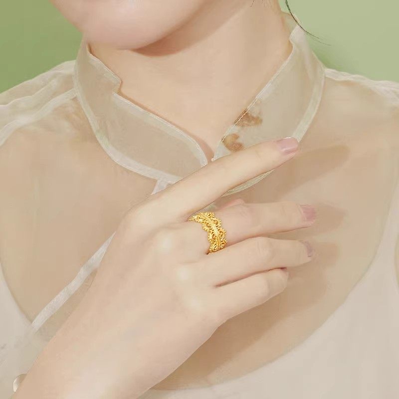 新中式金色镂空皇冠戒指女复古宫廷风轻奢精致小众国风高级感指环