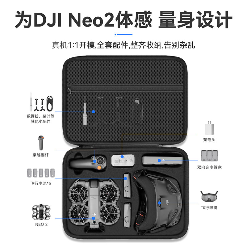 XFJI适用大疆DJI NEO2收纳包neo2硬壳标准双电畅飞套装体感套装户外便携盒斜挎掌上防摔防水无人机配件