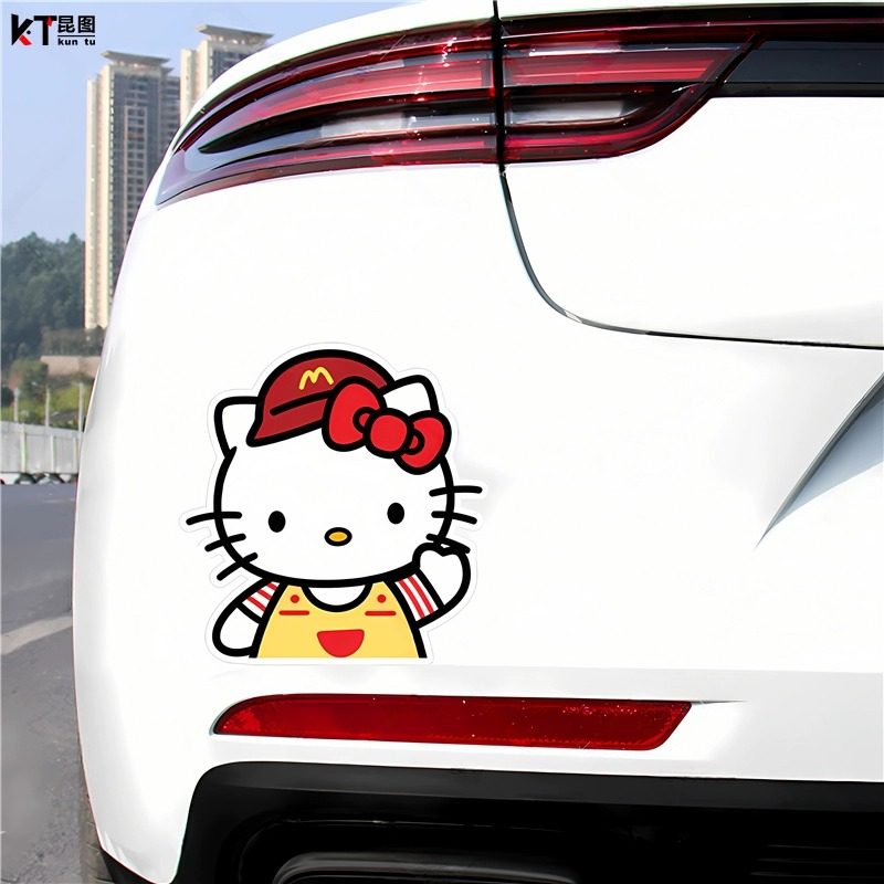 KT猫电动车贴可爱卡通装饰汽车油箱保险杠行李箱遮挡划痕贴纸防水