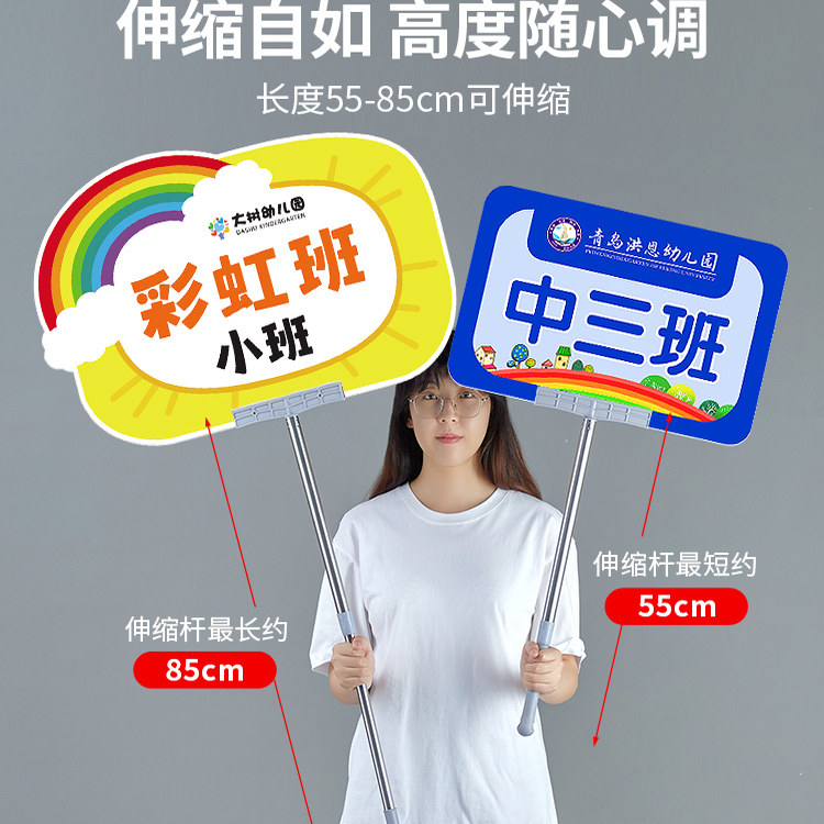 手举牌定制托管接送手举牌广告牌展示牌kt板广告宣传手持拍照直播间团建异形运动会班牌手举牌不锈钢伸缩杆子