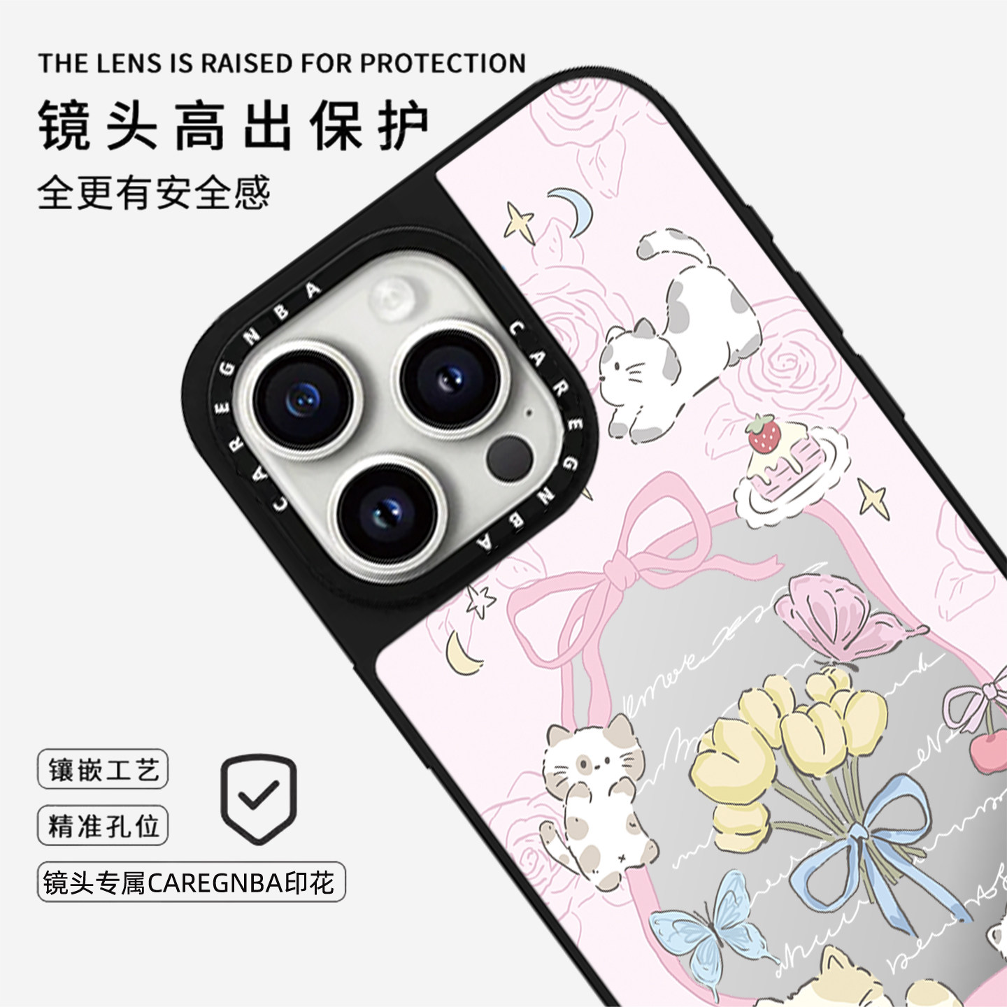 CAREGNBA联名蝴蝶结猫咪适用iPhone17ProMax手机壳苹果16plus透明15pro亚克力14全包12防摔11网红XR女13磁吸