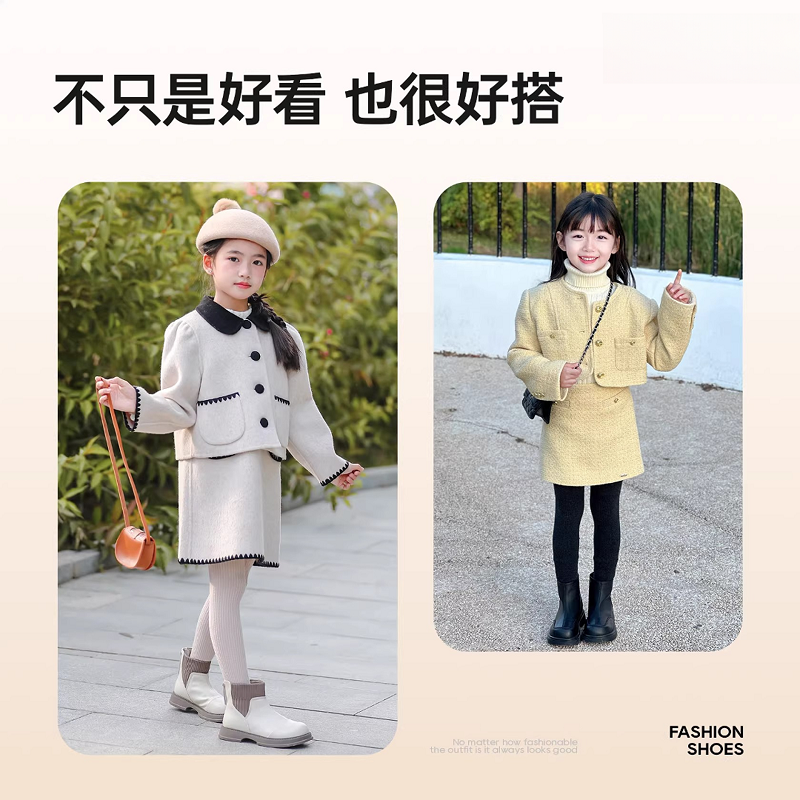 巴布豆真皮女童靴子短靴2025新款秋冬儿童皮靴女宝宝百搭马丁靴潮