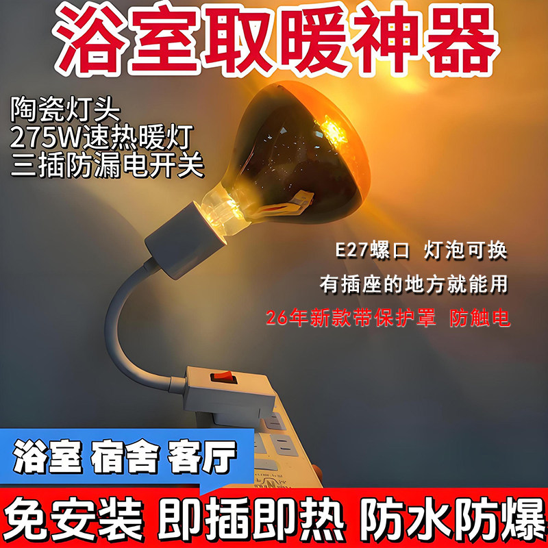 插座取暖灯浴霸灯泡220v275w防爆挂壁式卫生间专用浴室防水新款
