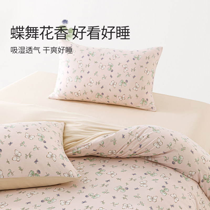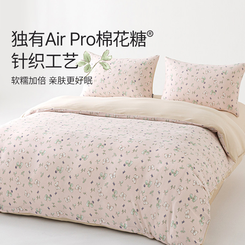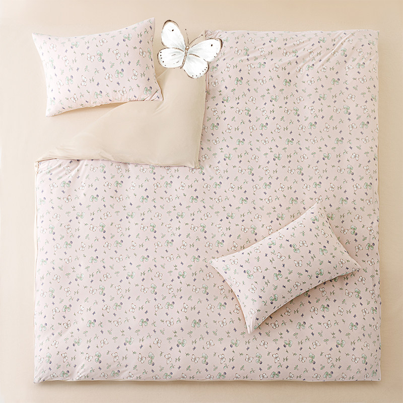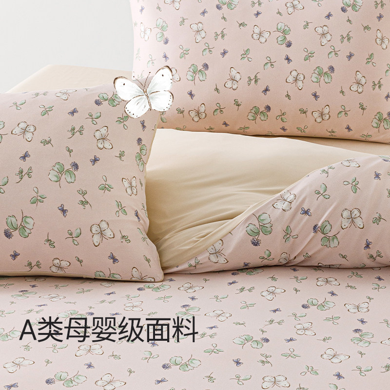 艾美家棉花糖套件福气蝶蝶母婴级床上用品床单床笠四件套柔软透气