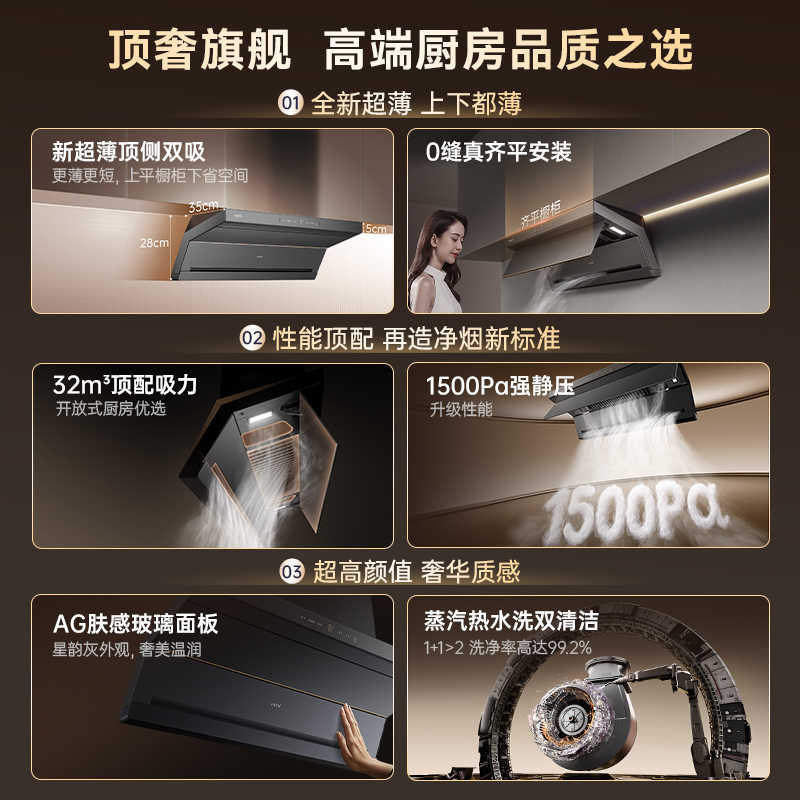 [小飞翼机王]华帝油烟机K10顶侧双吸抽油烟机家用蒸汽洗官方旗舰