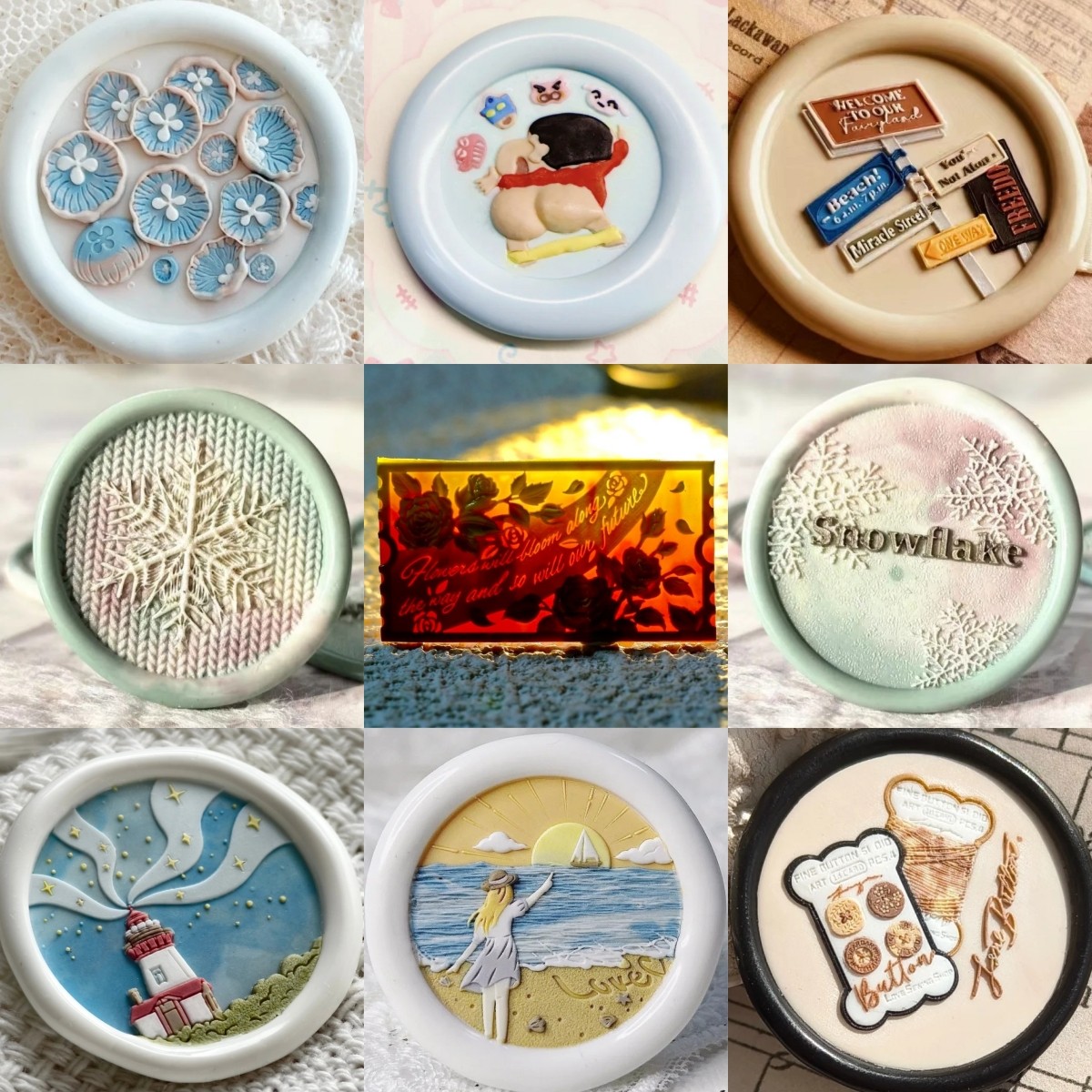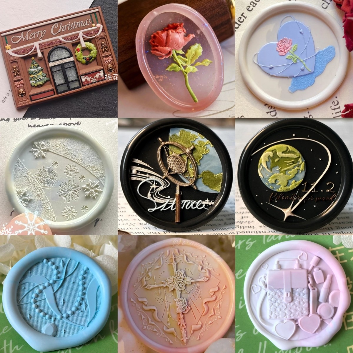 火漆印章章头浮雕玫瑰鲸韵梦灵精雕路灯圣诞邮票空白电影票黄铜头