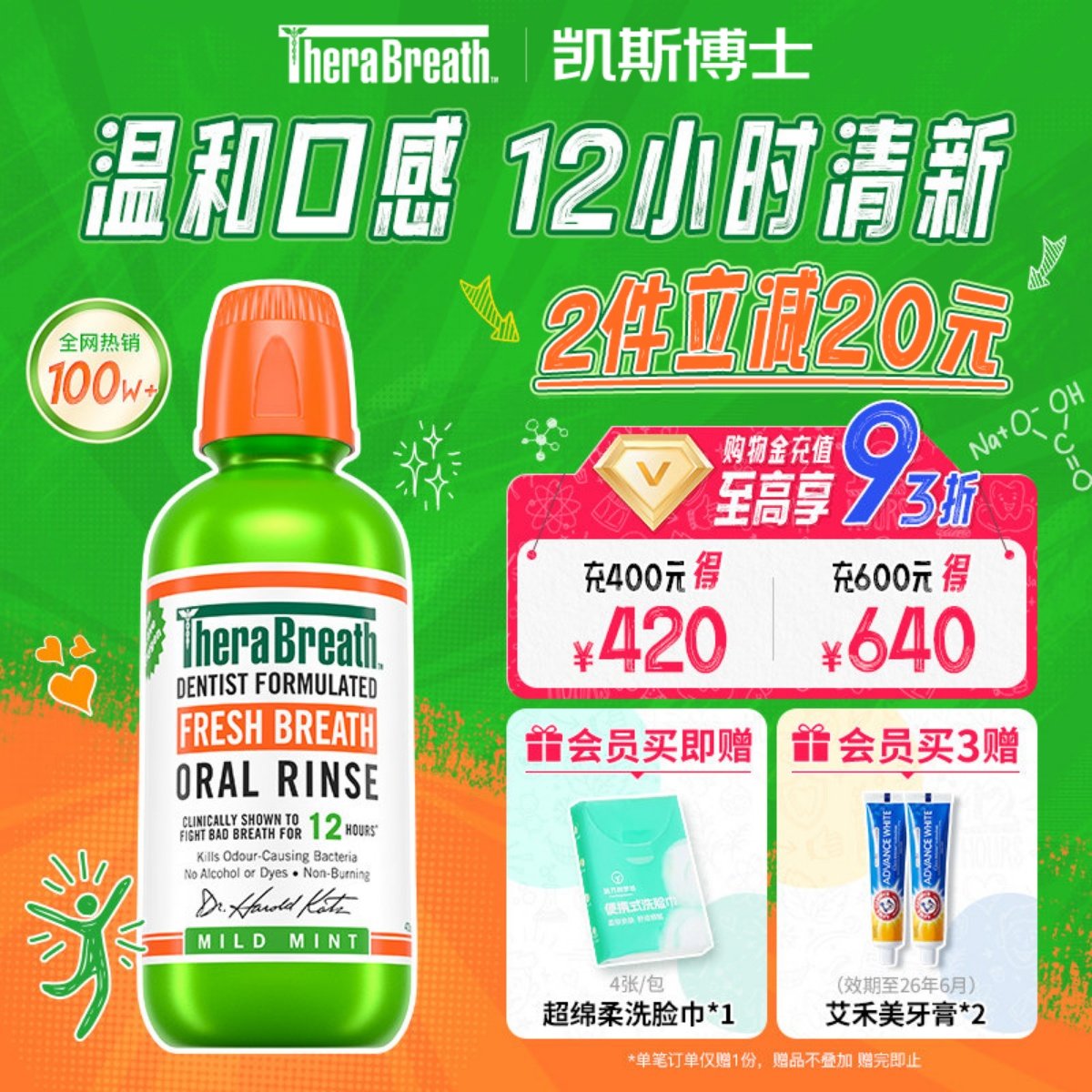 【自营】凯斯博士TheraBreath漱口水温和除口臭持久留香减少细菌