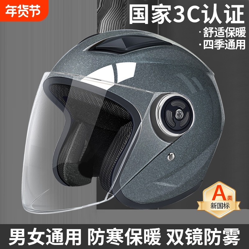 新国标3C认证电动摩托车头盔男女电瓶车防双镜冬季四季通用安全帽