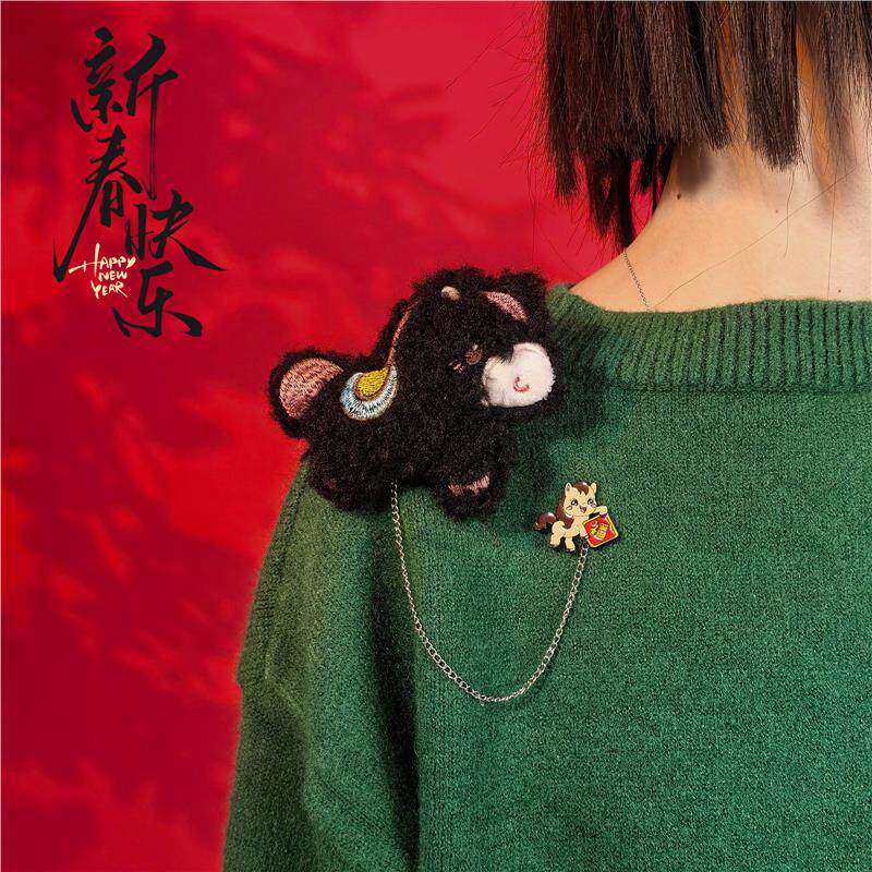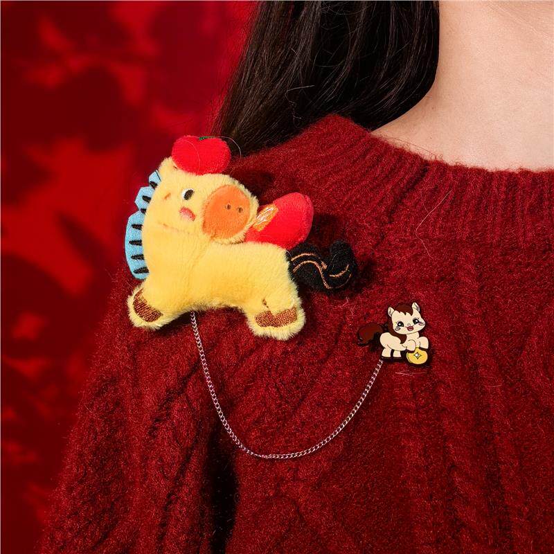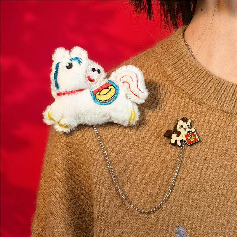 2026新款马年毛绒可爱卡通小马胸针链条毛衣装饰品元旦公司送礼品