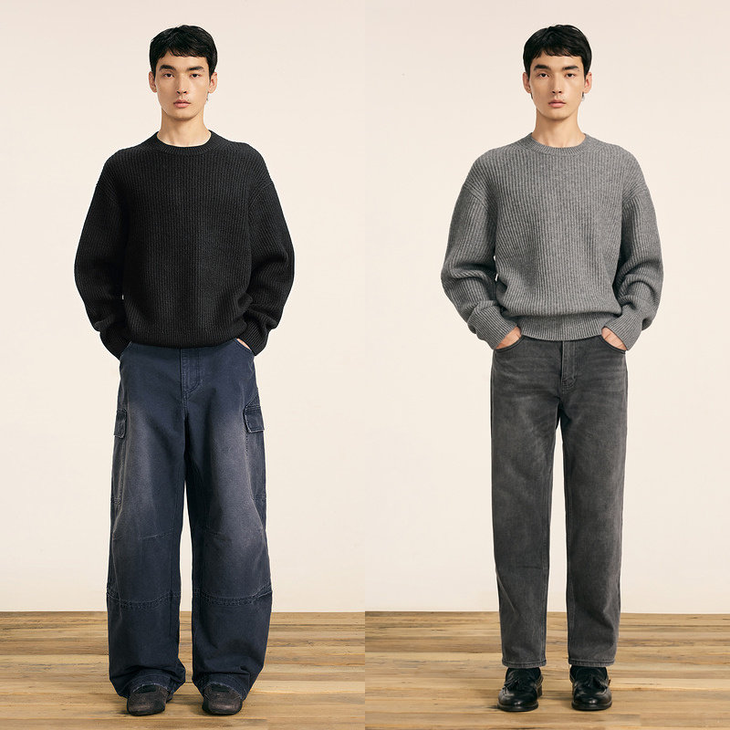[牦牛绒混纺]速写男装秋冬新款毛衫套头圆领简约宽松纯色舒适毛衣
