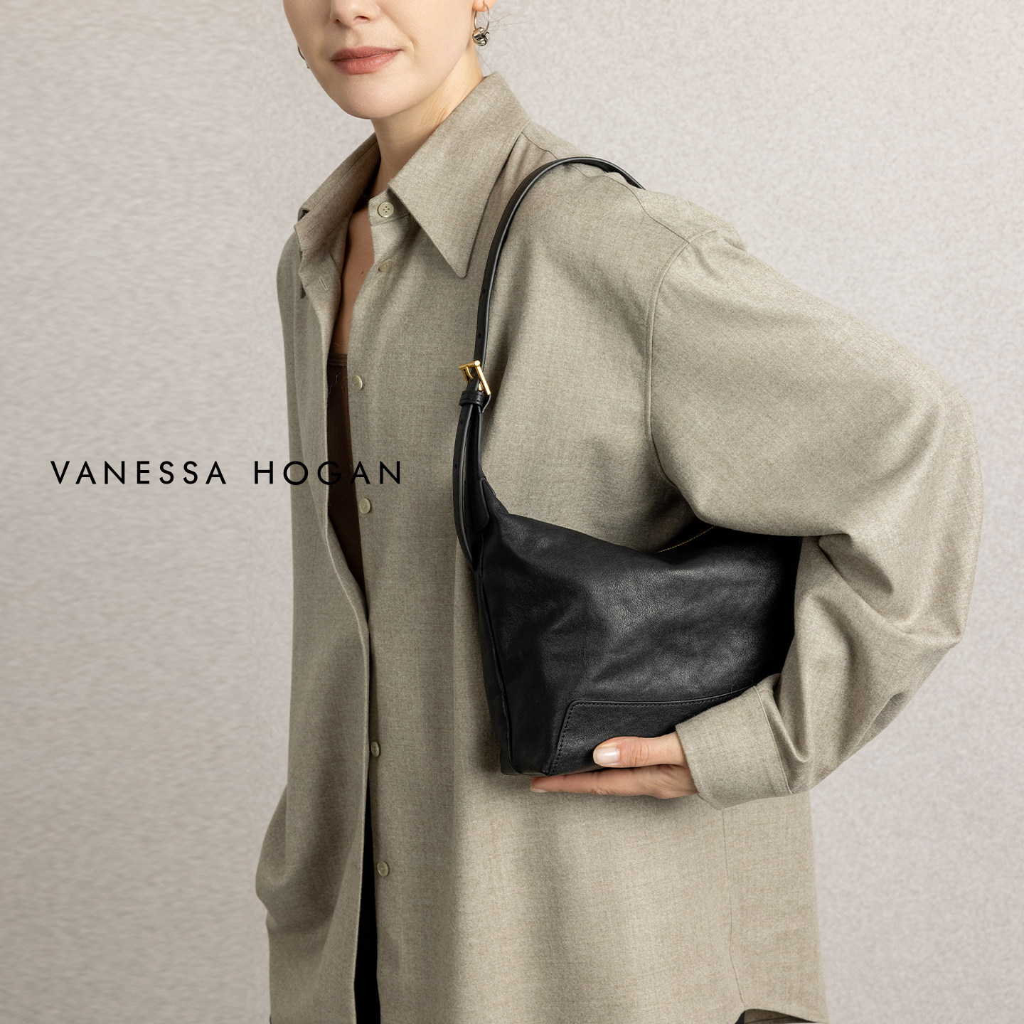 【张雅钦同款】VH女包欣冉hobo包头层植鞣牛皮质感斜挎腋下单肩包