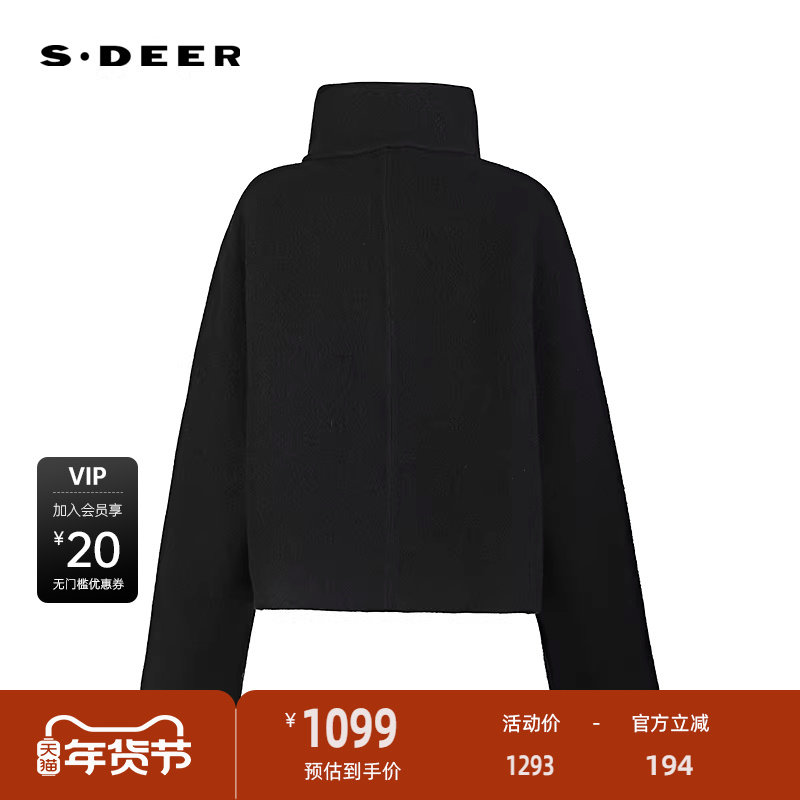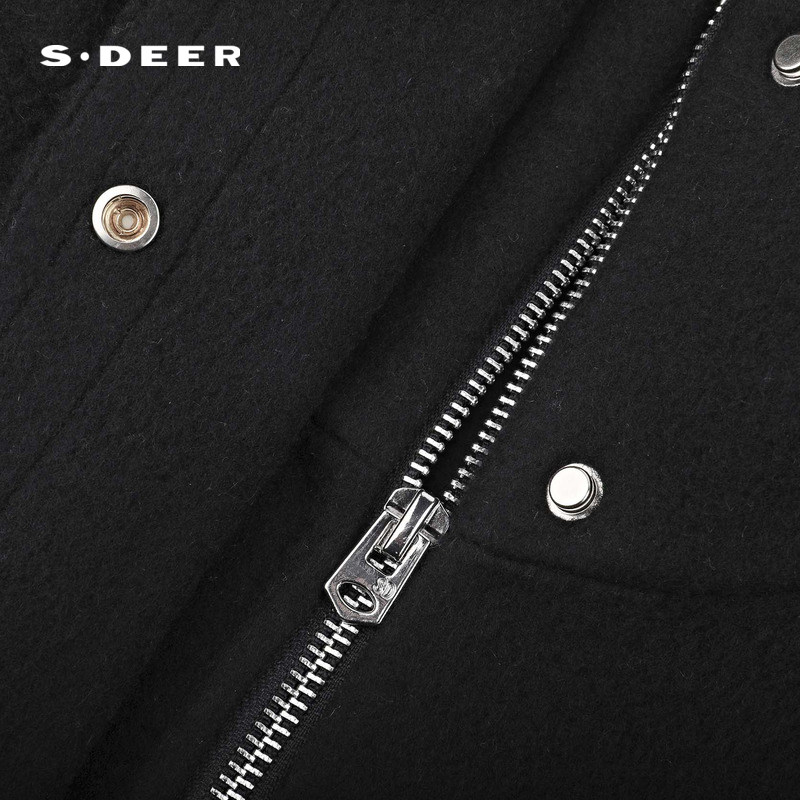 sdeer圣迪奥女装25年新品休闲立领撞色印花绵羊毛大衣S25482621