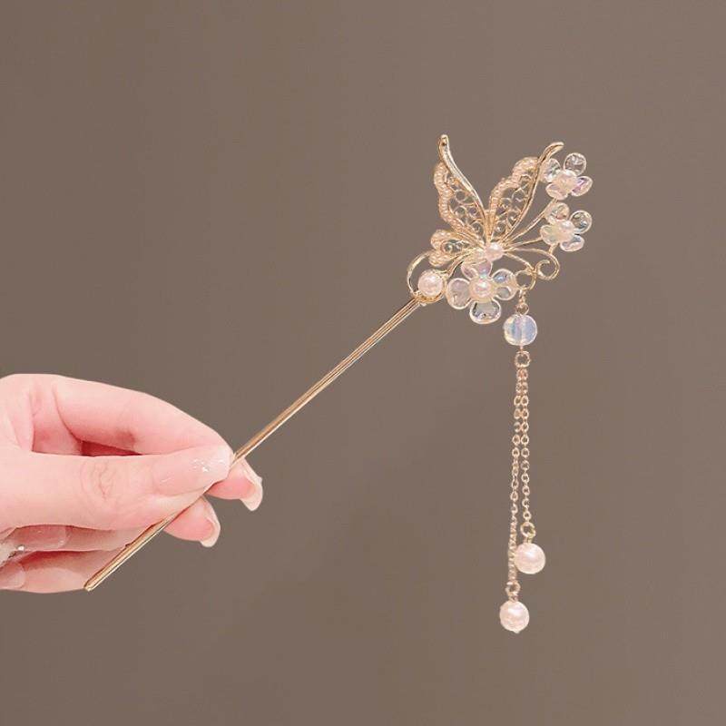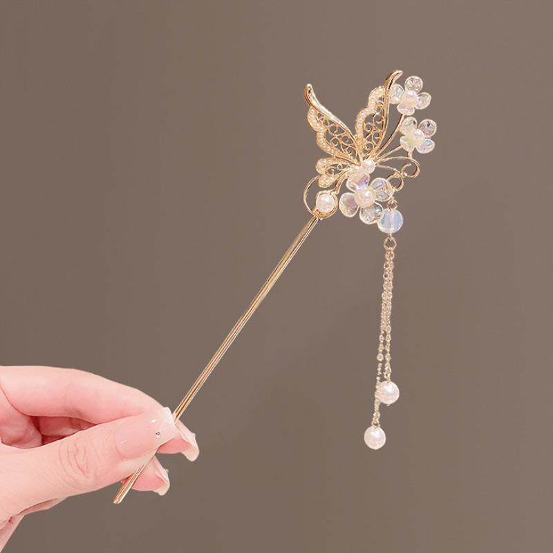 蝴蝶气质中式步摇发簪汉服古风头饰高级感发钗女古装盘发流苏簪子