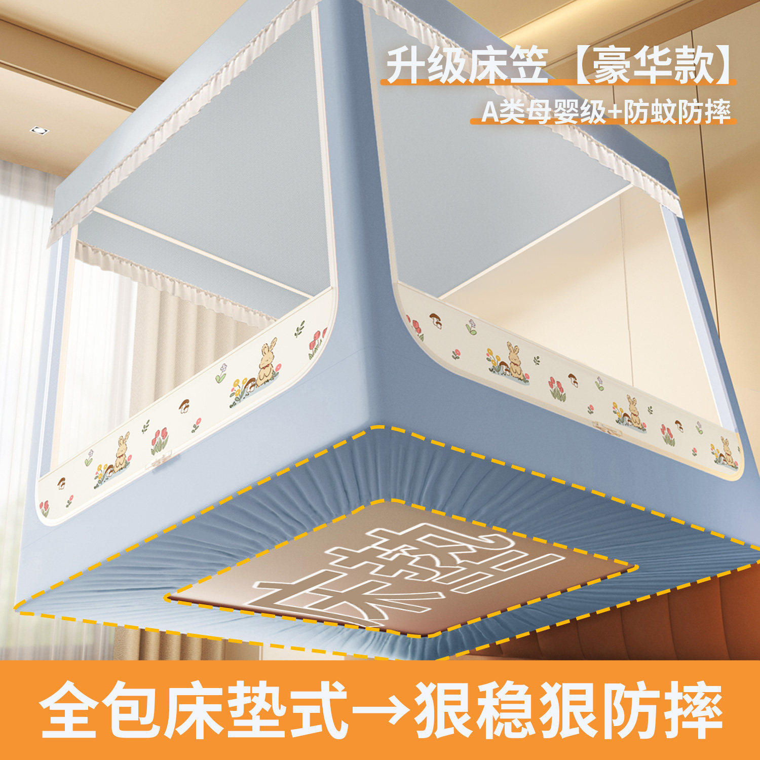 丸丫V2防摔蚊帐婴儿2025新款专用儿童纹帐家用卧室防掉床全底全罩