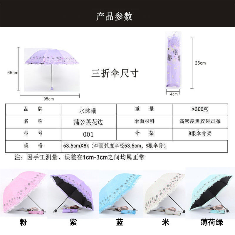 蒲公英黑胶伞蕾丝花边伞防晒遮阳伞防紫外线晴雨两用手动加固