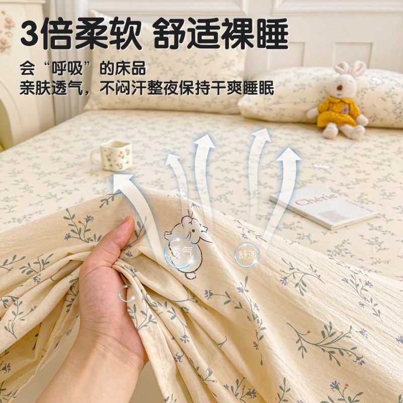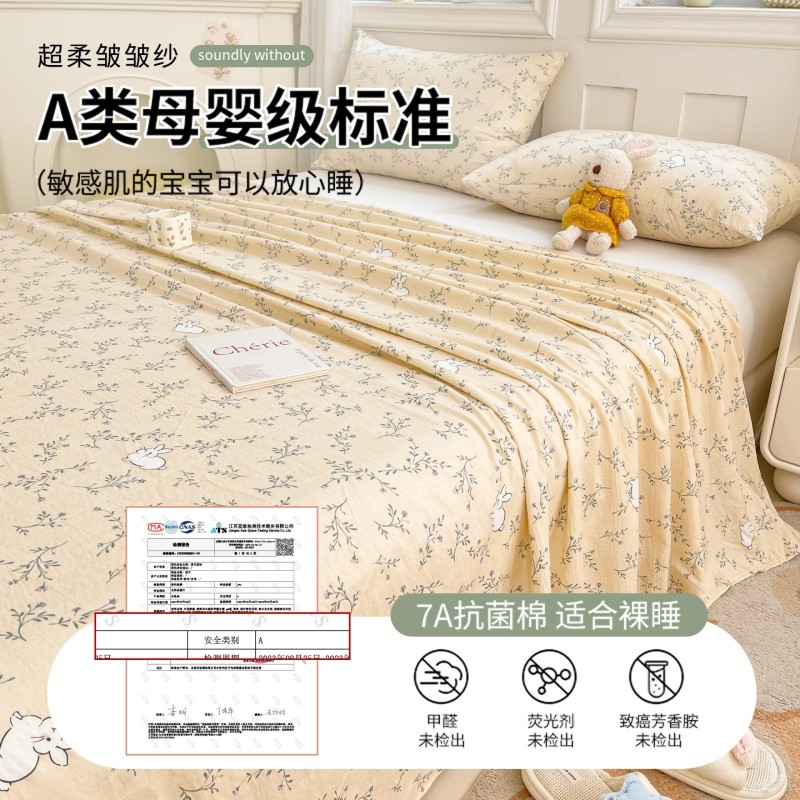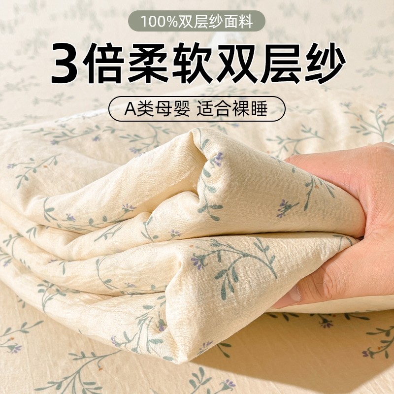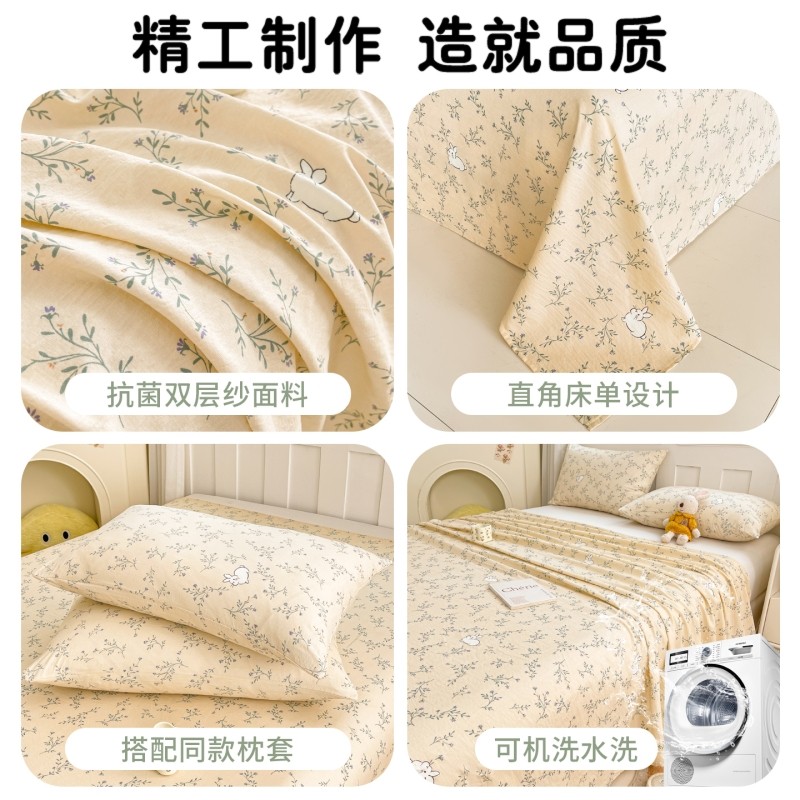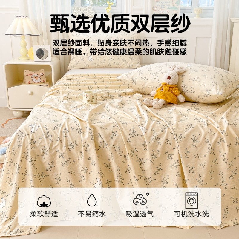夏季双层纱床单单件a类母婴级宿舍单人非纯棉全棉被单枕套三件套