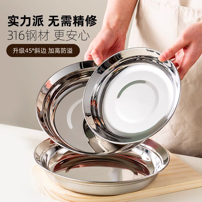 加厚316食品级不锈钢盘子骨碟家用备菜盘圆盘餐盘糕盘圆形盆锅碗