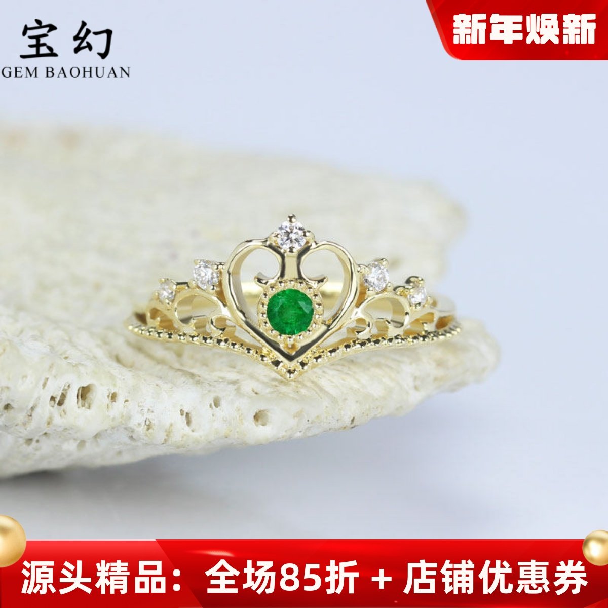 18K玫瑰金天然鸽血红宝石小公主皇冠戒指 祖母绿蓝宝钻石白黄金女