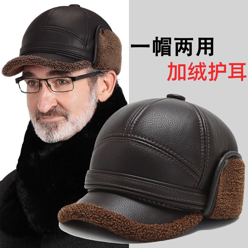 中老年人爸爸帽子男士秋冬季老头爷爷加绒保暖护耳雷锋帽防寒平顶