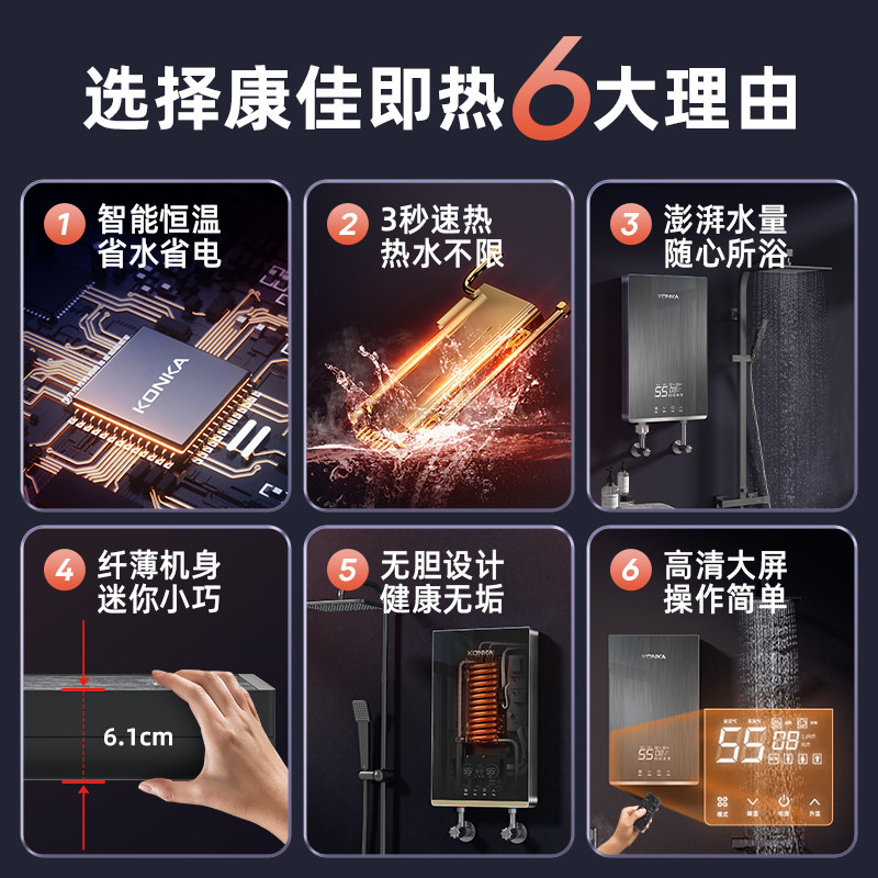 康佳即热式电热水器过水速热智能恒温小型租房家用洗澡专用神器