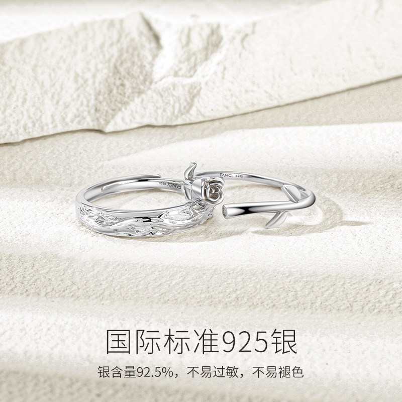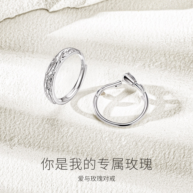 结婚Fanci范琦玫瑰系列爱与情侣对戒戒指女礼物送女友刻字可调节