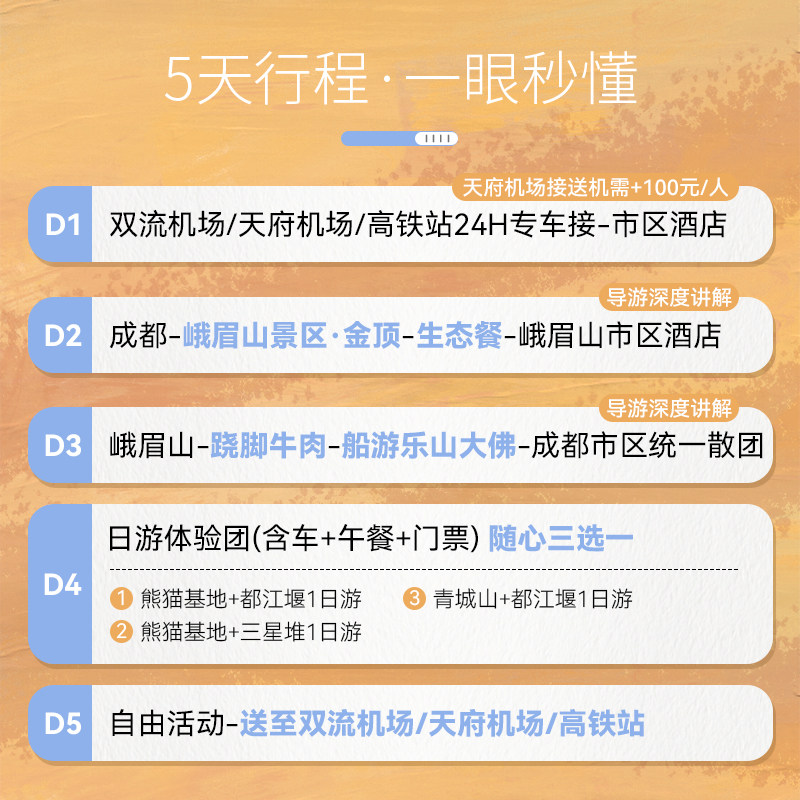 【主播推荐】四川5天4晚成都旅游乐山峨眉山熊猫基地住4钻酒店