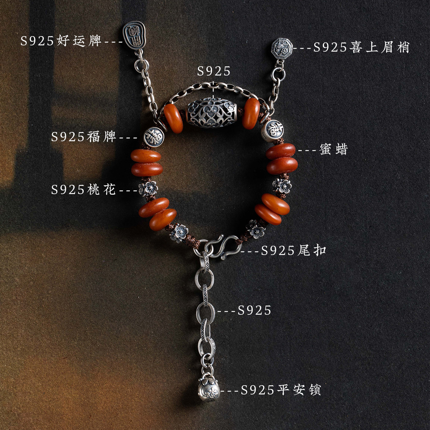 【设计款】保真纯银转运珠手链天然老料蜜蜡手串文艺复古手饰