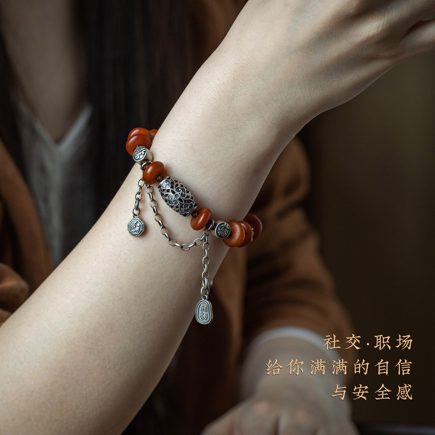 周大生好柿花生红玛瑙手串纯银国风设计感手链女本命年礼物送女友