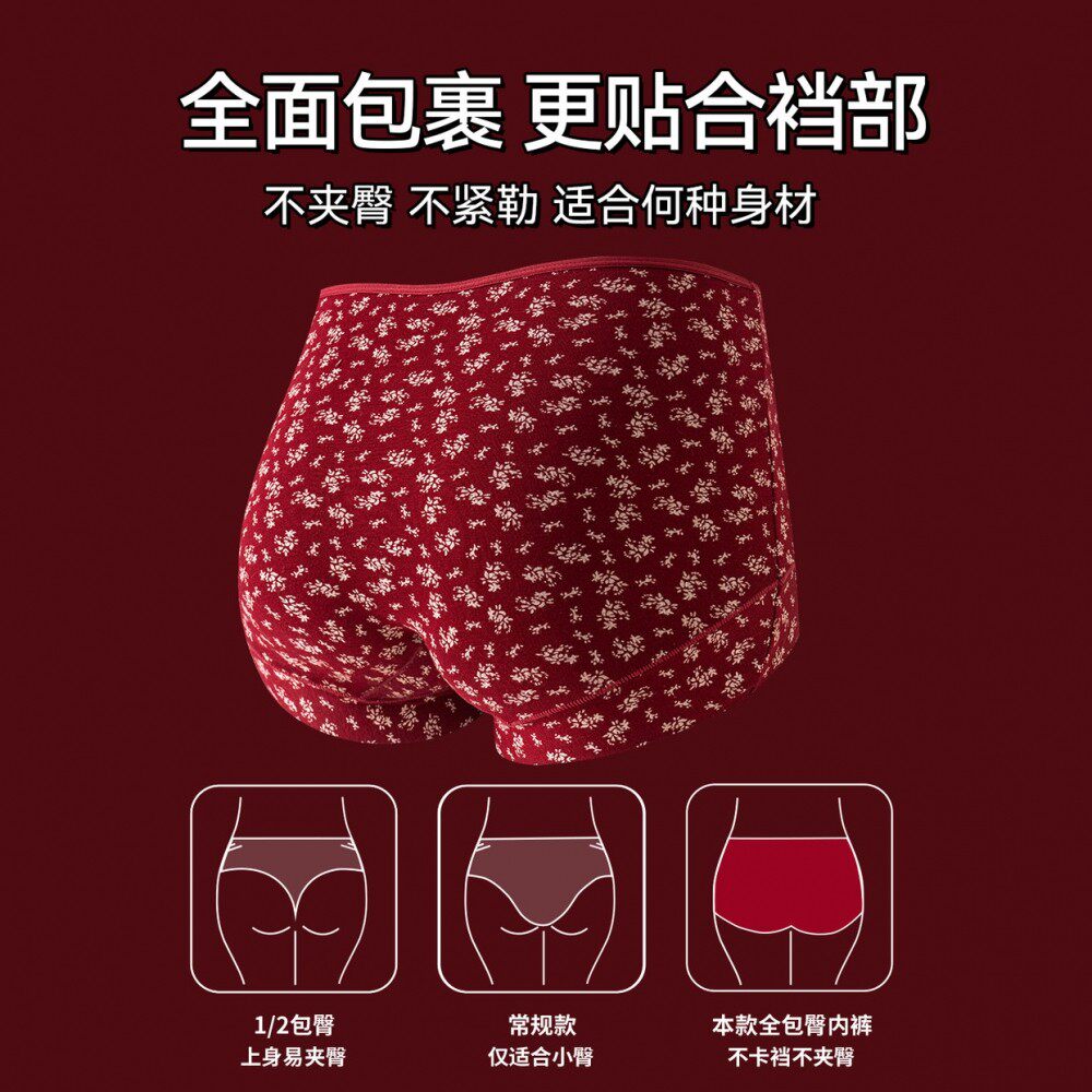 雅鹿红色本命年内裤女士纯棉抗菌平角2026新款全棉碎花女生四角裤