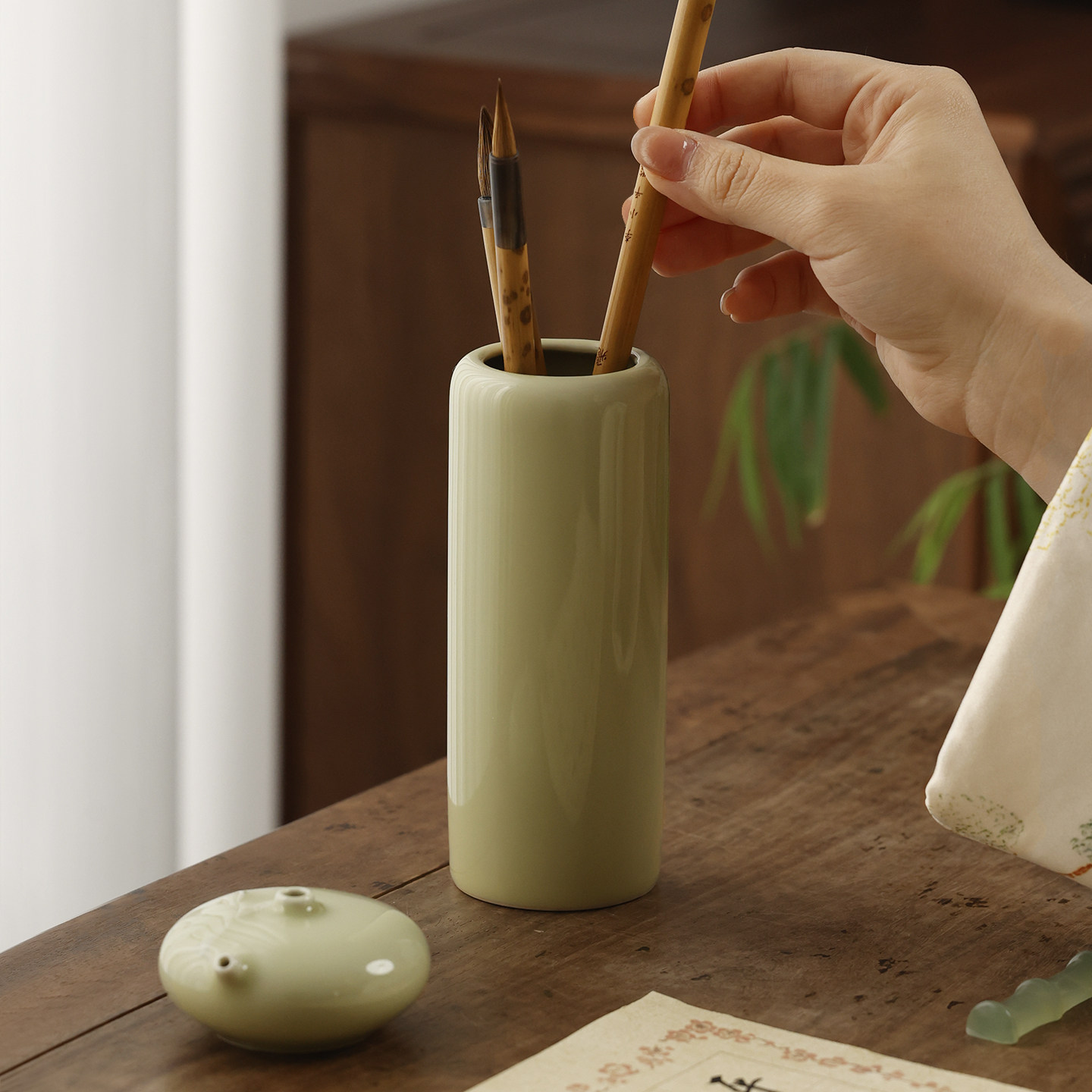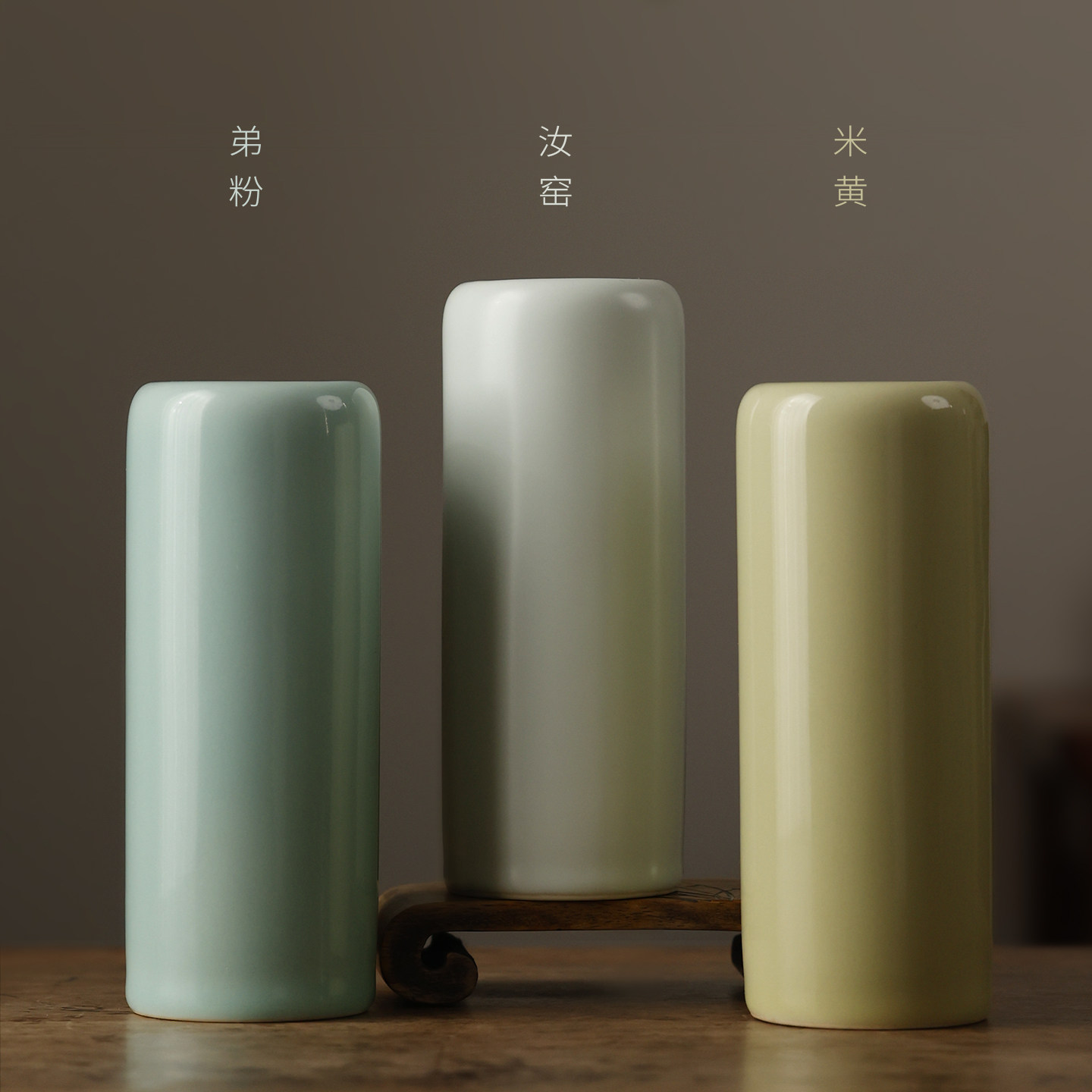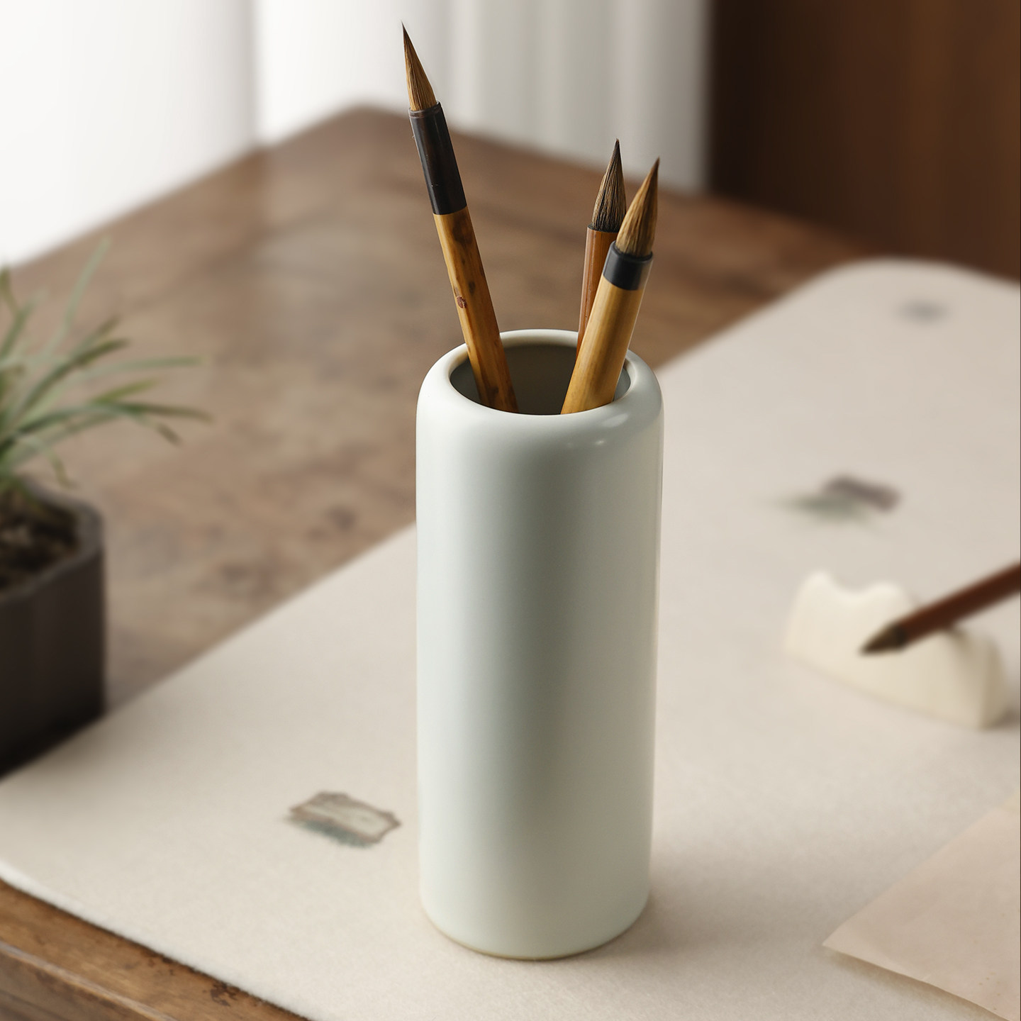 汝窑素面小笔筒 仿古瓷器复古文房四宝书法专用陶瓷器小摆件创意初学者实用