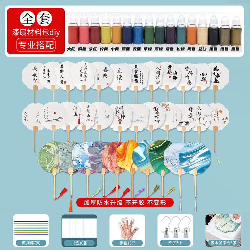 漆扇套装DIY材料包全套中国风古风团扇宣纸扇子景区摆摊颜料竹艺