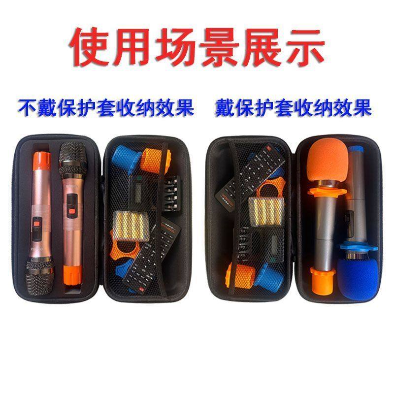 话筒收纳盒双无线话筒收纳包麦克风保护盒便携防护拉链包灰色手提
