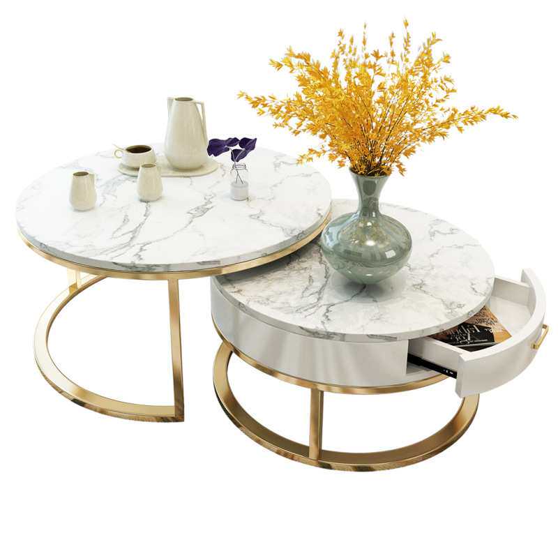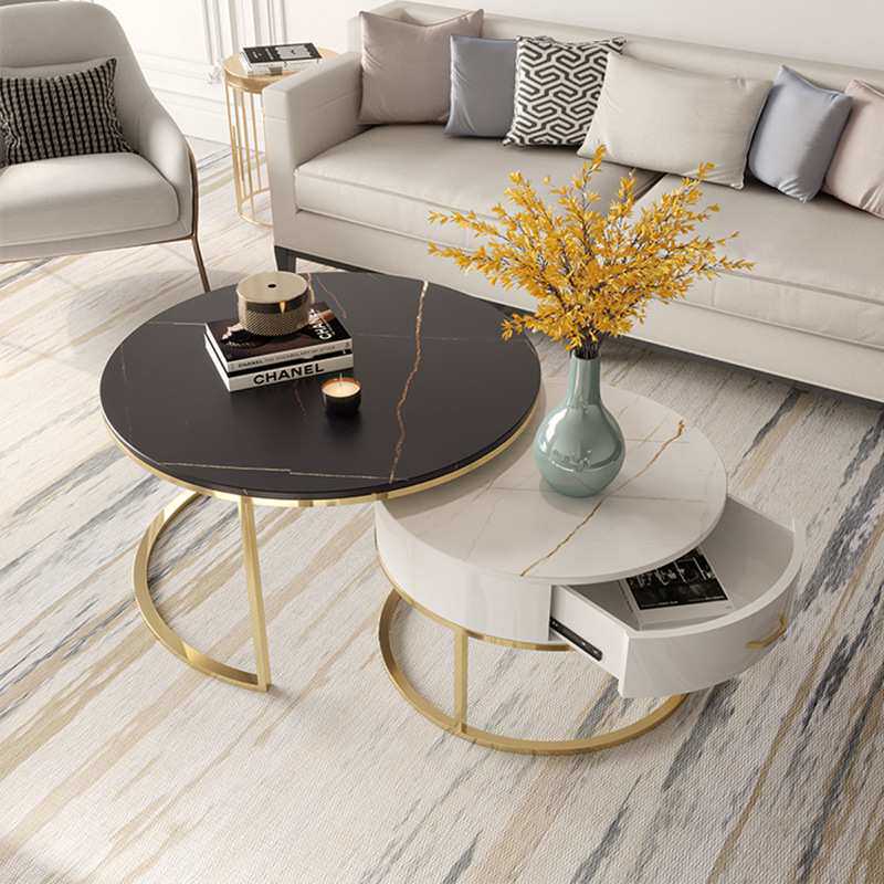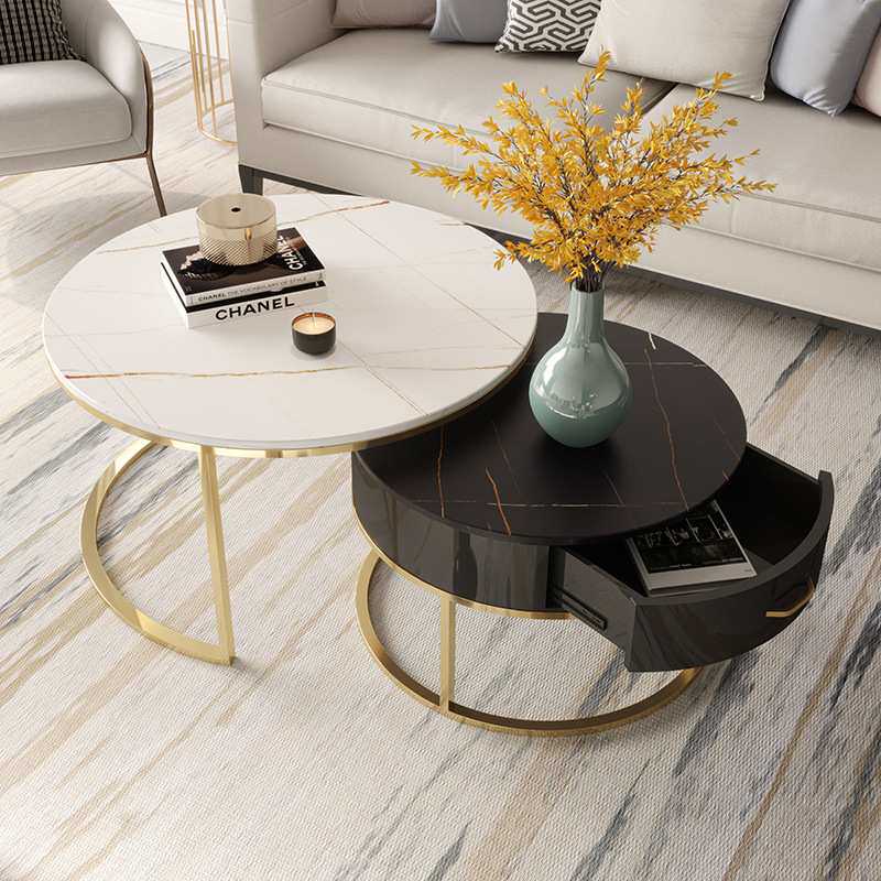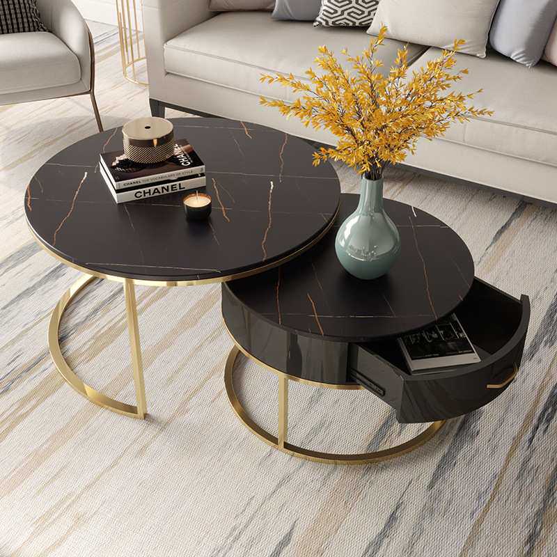 铁艺金色岩板圆形小茶几家用客厅沙发子母茶几组合大理石边几