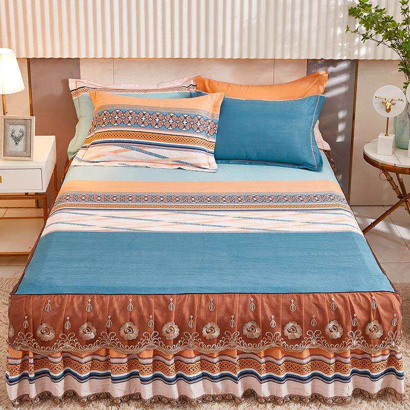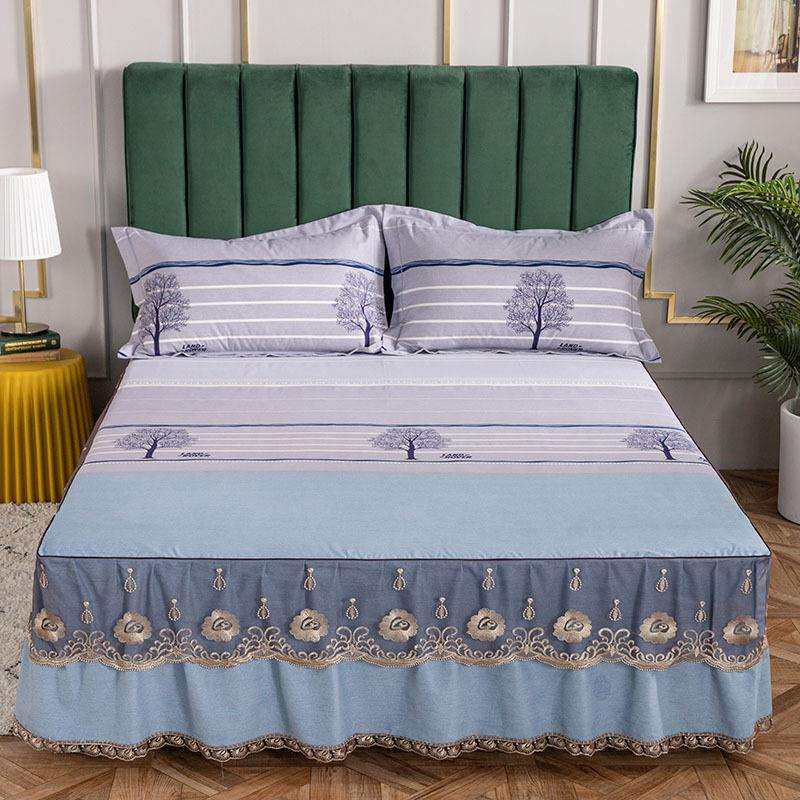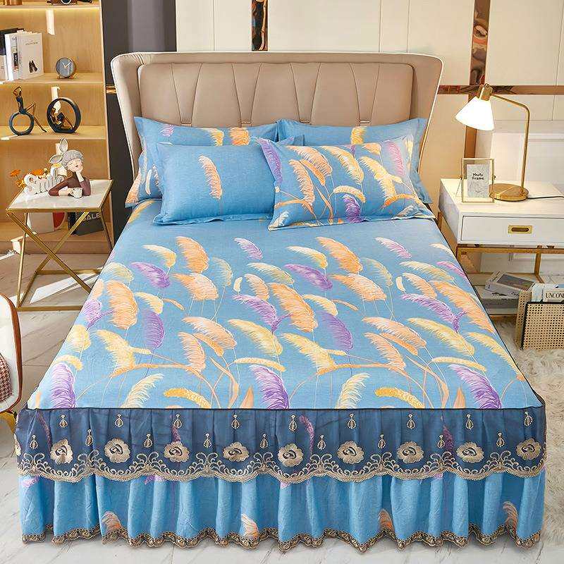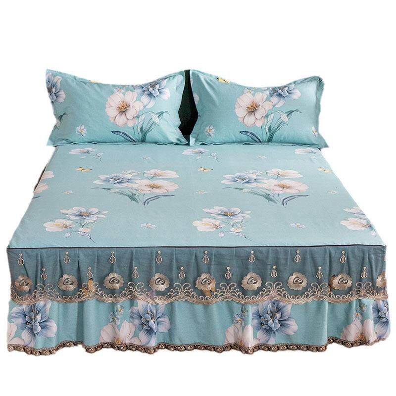 纯棉单件床裙床罩三件套花边加厚磨毛床单荷叶边枕套高品质床品