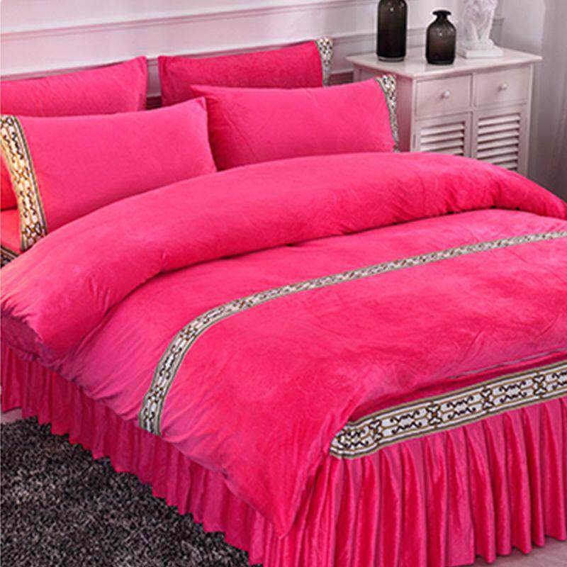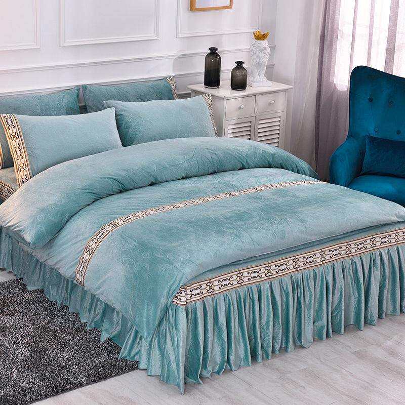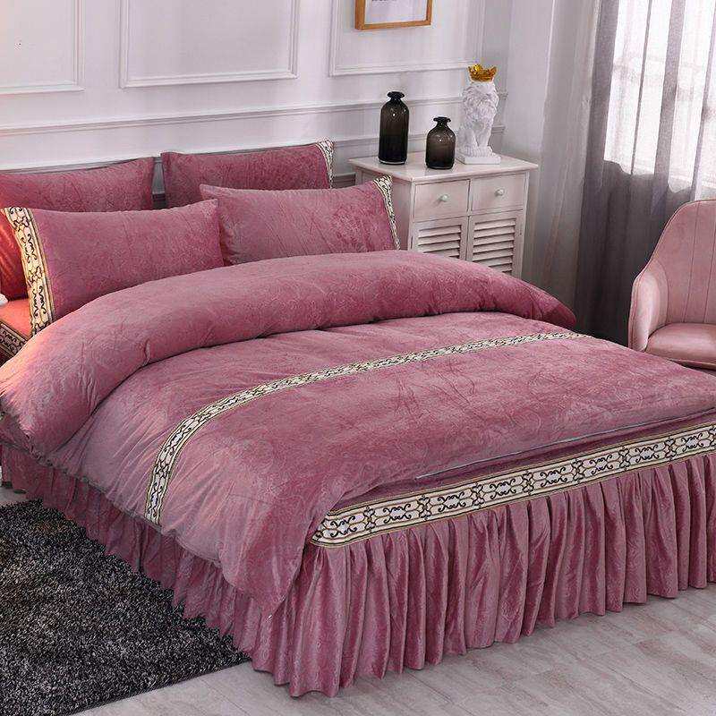 四件套水晶绒床裙款纯色床上用品简约欧式高档网红爆款保暖罩冬季