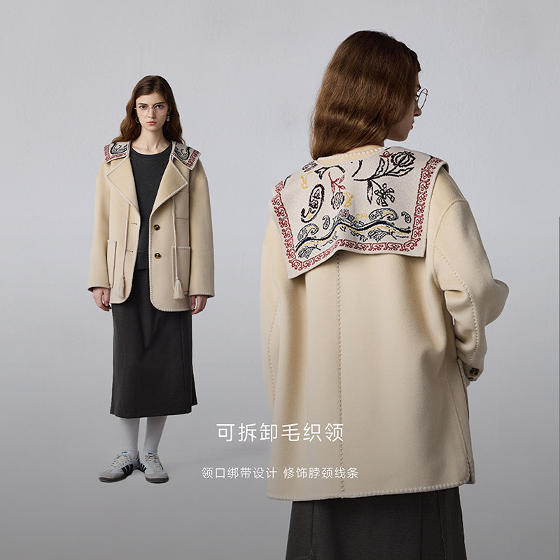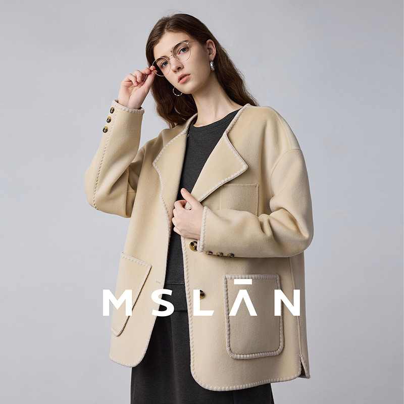 费尔岛/MSLAN秋冬复古披肩绵羊毛双面呢小个子大衣外套MFDW201