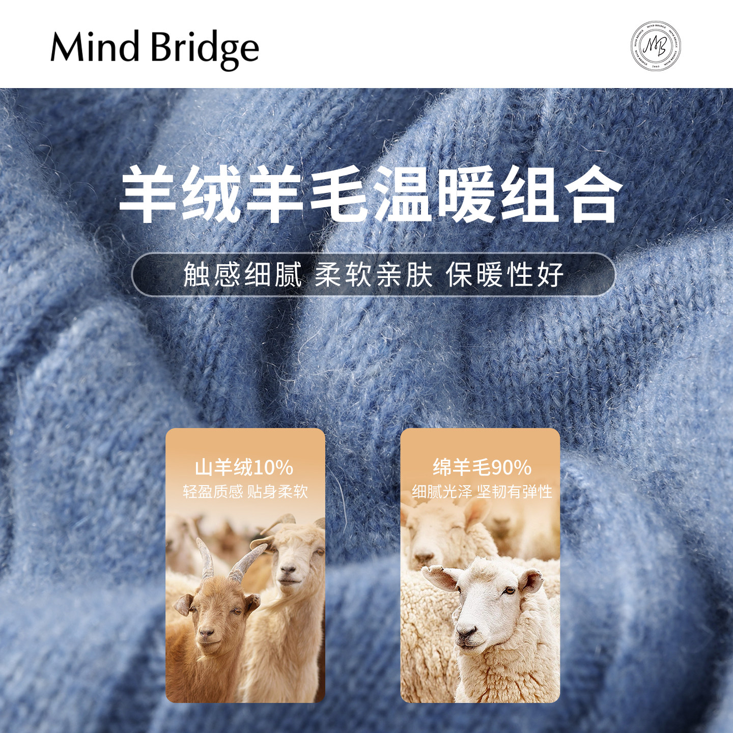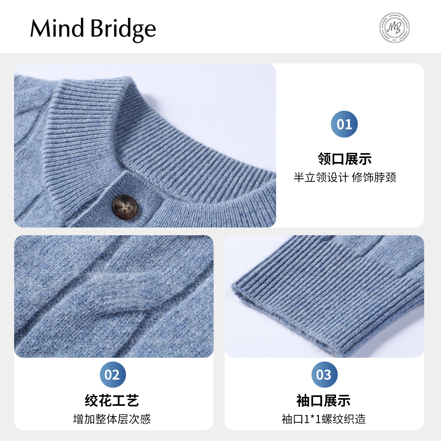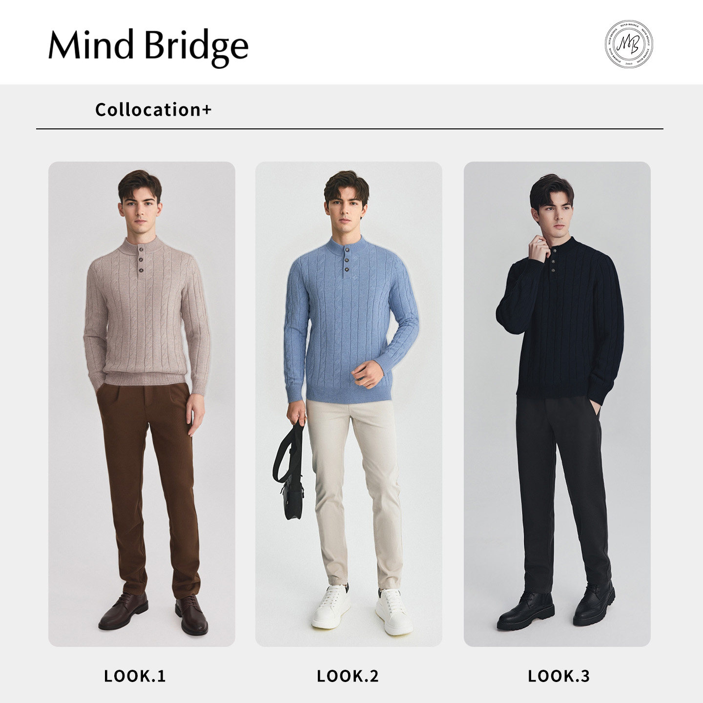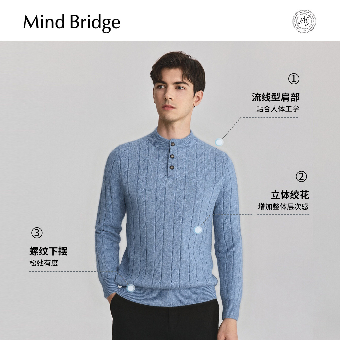 Mind Bridge【山羊绒】男士半高领毛衣2025年冬休闲绞花纹羊毛衫