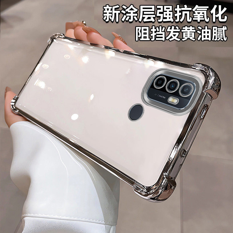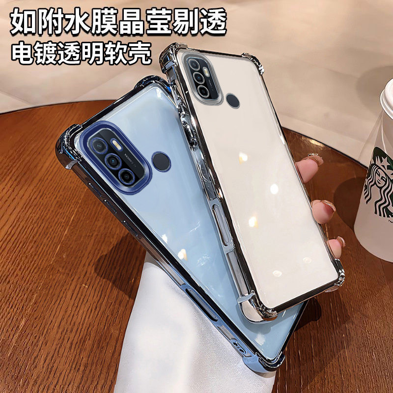 OPPOa32手机壳新款四角气囊硅胶防摔时尚镜头全包软壳适用OPPOa53高级感奢华强抗氧化简约电镀透明男女手机壳